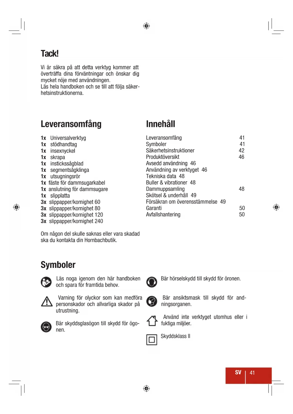 | 1x | Universalverktyg | Leveransomfang | 41 |