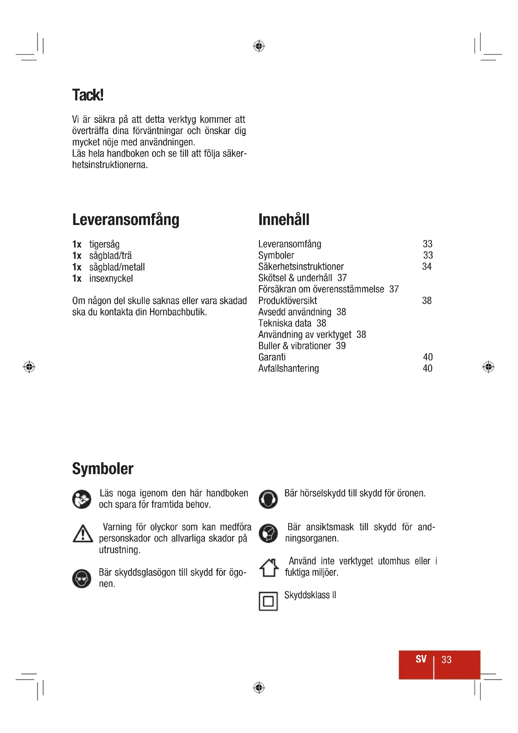 1x sagblad/metall Sakerhetsinstruktioner 34