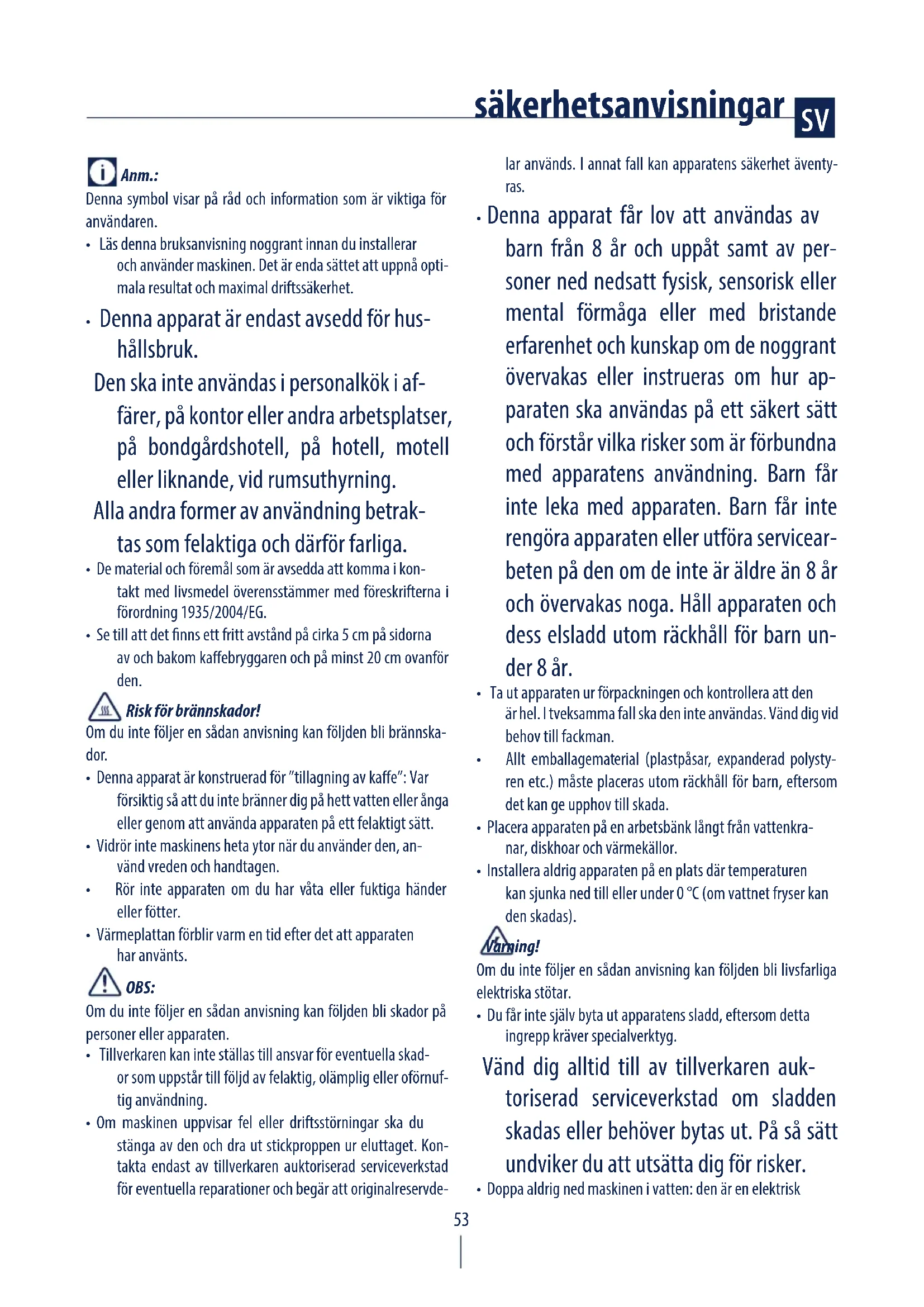- Tänk på att kaebryggaren är en elektrisk apparat och an- vänd den med sunt förnuft och försiktighet, särskilt när det nns små barn i närheten.