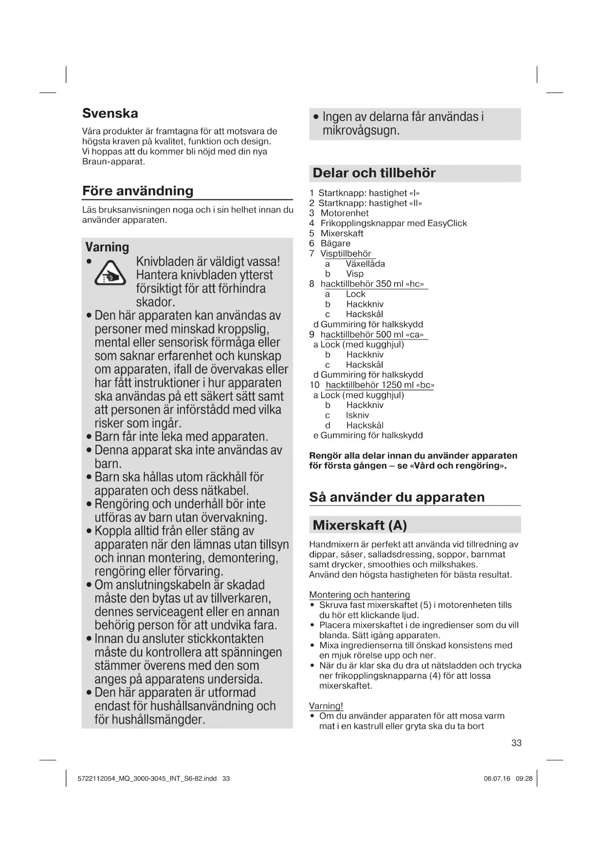- Endast «bc»-hacktillbehöret med den särskilda iskniven får användas för att krossa isbitar. 5722112054_MQ_3000-3045_INT_S6-82.indd 345722112054_MQ_3000-3045_INT_S6-82.indd 34 06.07.16 09:2806.07.16 09:2835