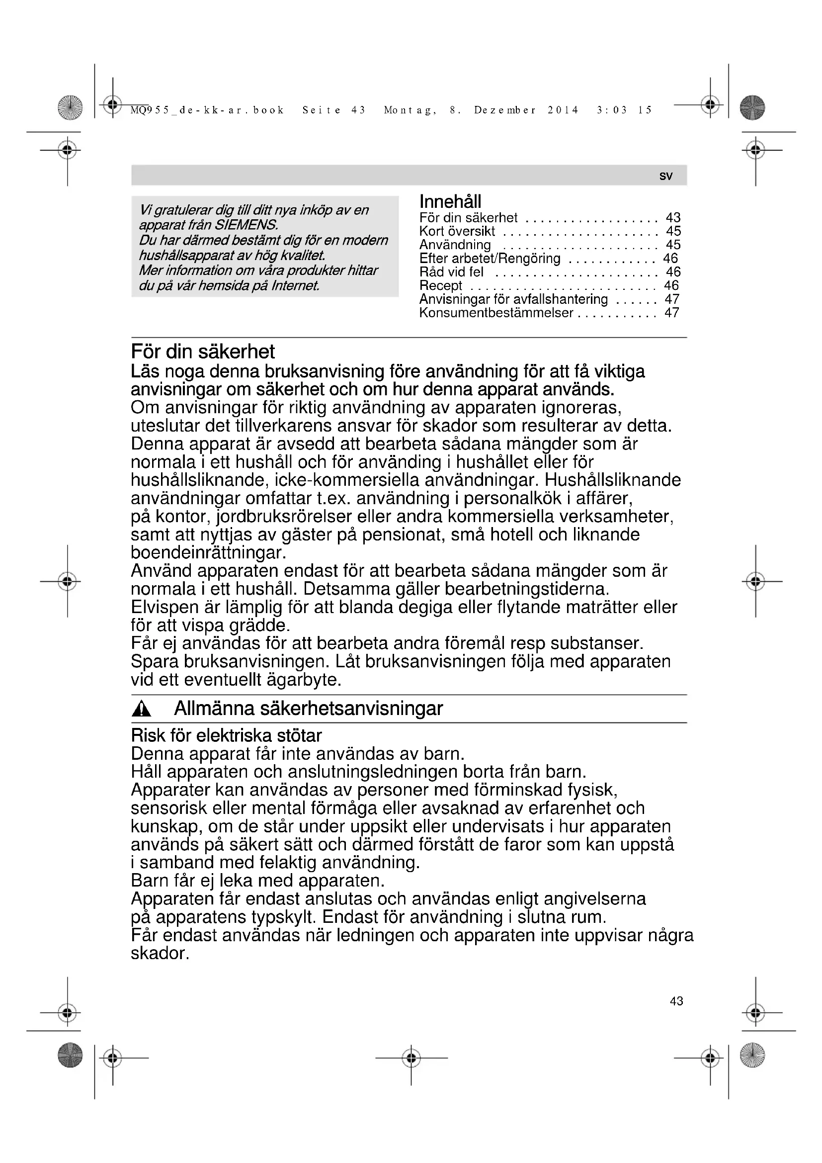 Hitta enhetens manual gratis MQ95530N SIEMENS i PDF-format.