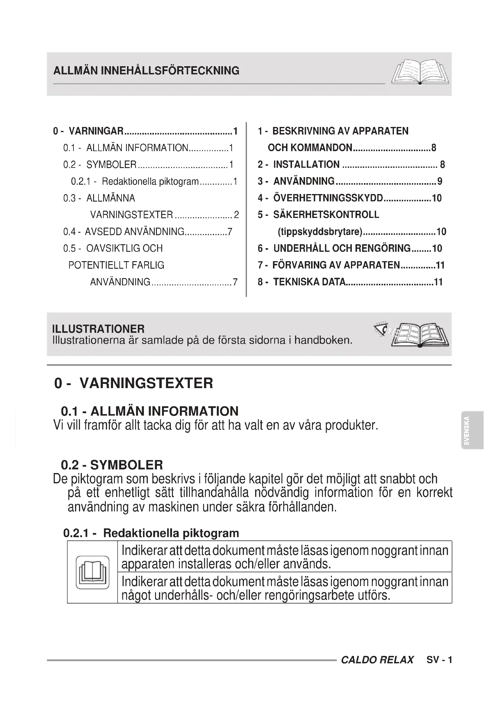 re tids inaktivitet kan det hända att du hör ett svagt brus eller känner en viss lukt. Det är helt normalt och försvinner efter ett par minuters drift.CALDO RELAX SV - 7 SVENSKA