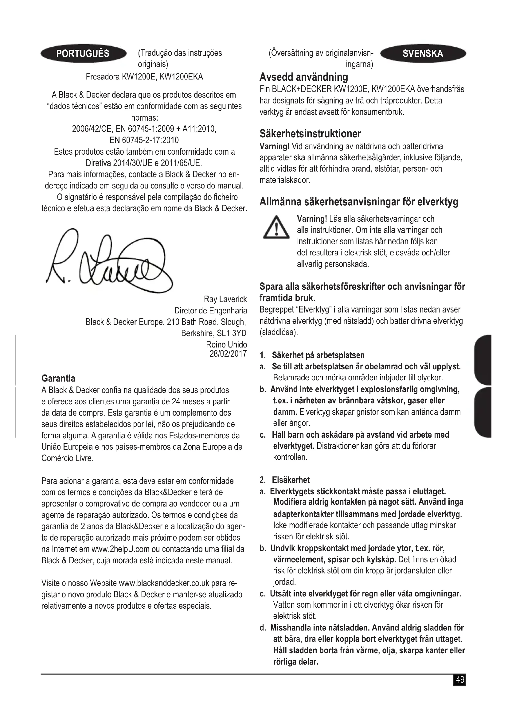 Undertechnad ar ansvarig for sammanställingen av tekni-ska data och görenna forsakran for Black & Decker.