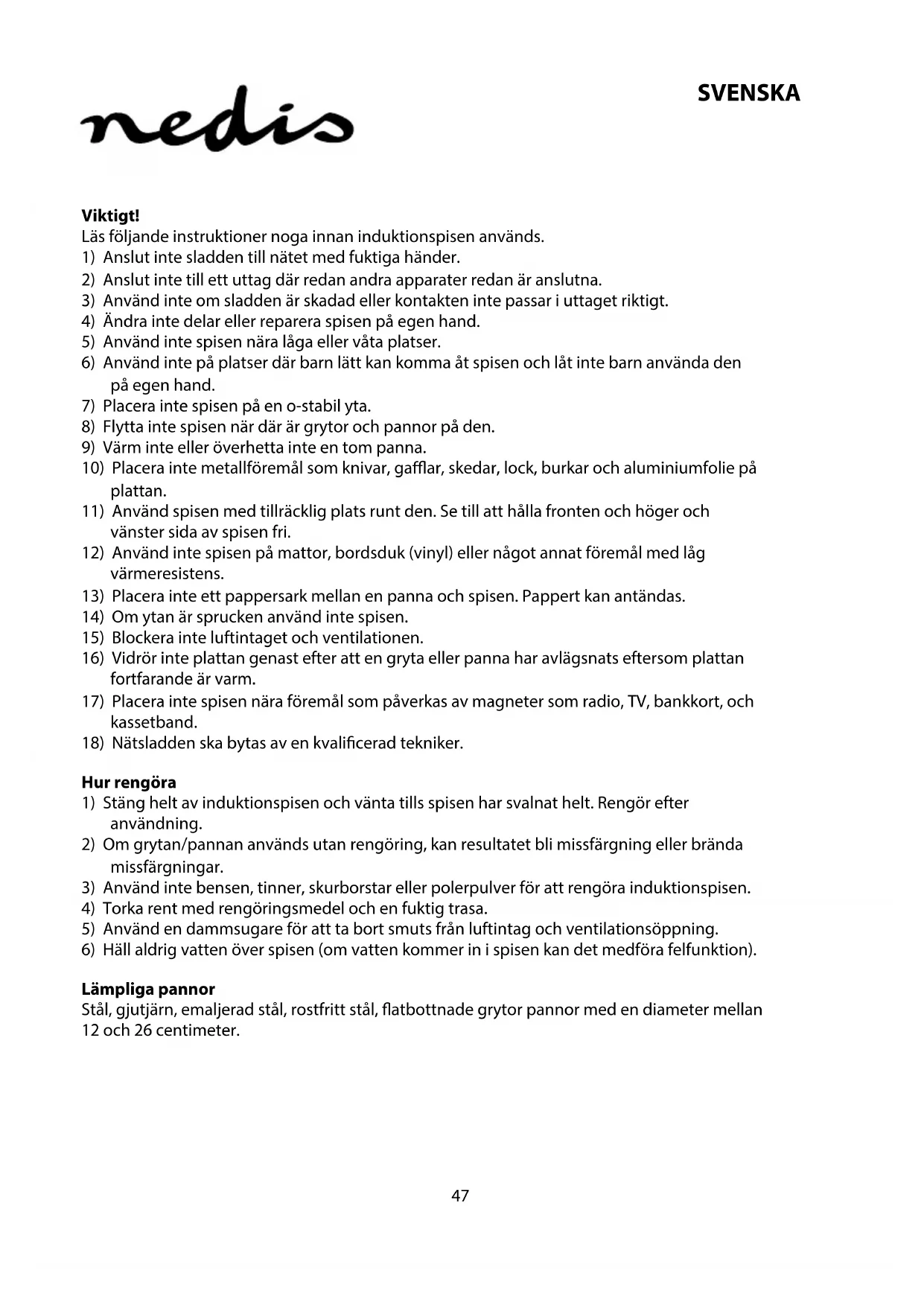 13) Placera inte ett pappersark mellan en panna och spisen. Pappert kan antändas.