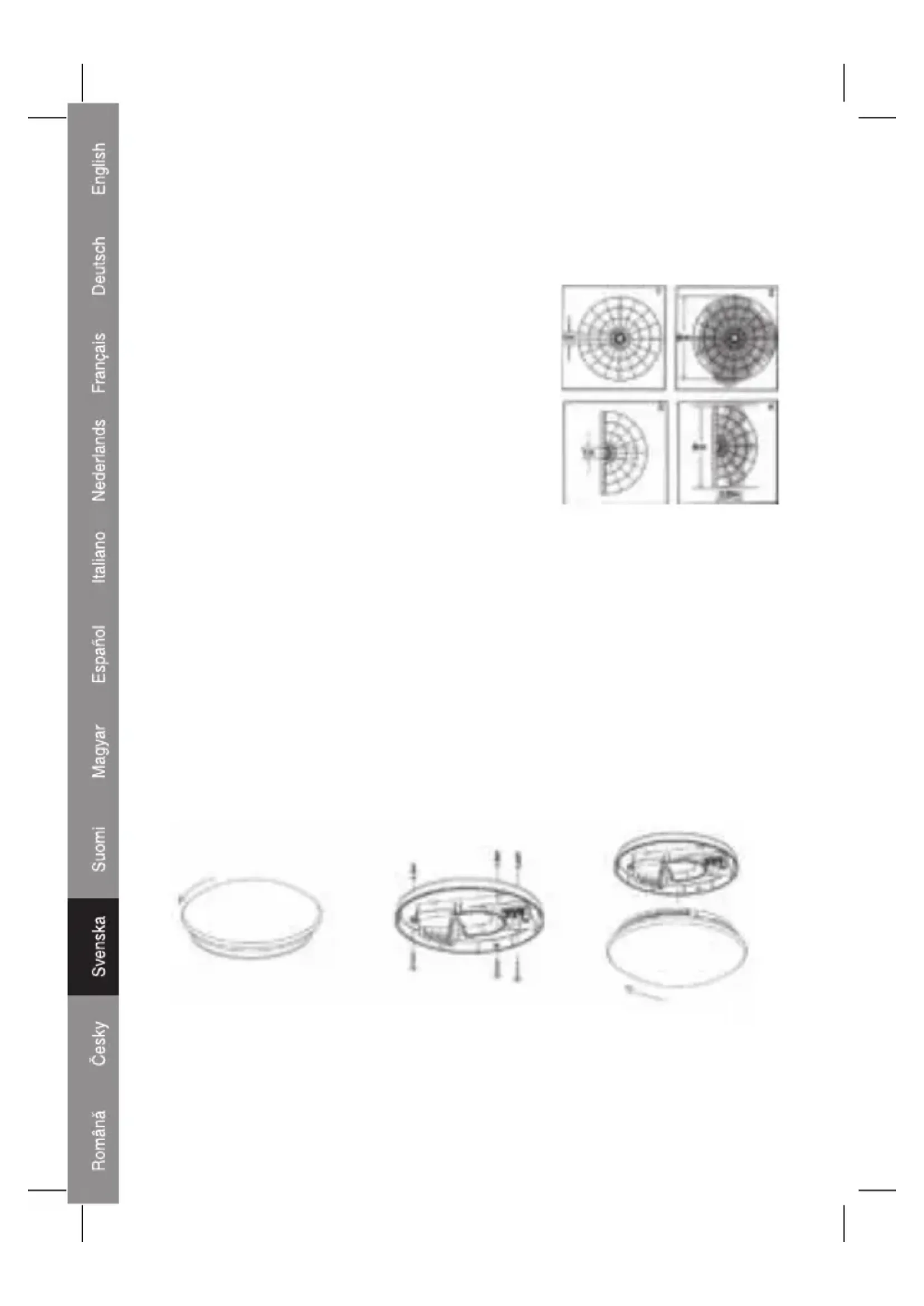Tekniska specikationer: Watt: 60W/E27 Strömförsörjning: 220-240V~, 50/60Hz Installationsplats: Inomhus, vägg/takmontering HF-system: 5.8GHz CW radar, ISM band överföringsström: <10mW Detekteringsvinkel: 360°, 160° Räckvidd:1-8 m (dia.), justerbar Tidsinställning: 5 sek till 15 min Skymningsinställning: 2~2000LUX Strömförbrukning: ca .0,9W Anslutning av belysning Anslut N, L med ström, Inställning av räckvidd (känslighet) Räckvidden anger diametern av en mer eller mindre cirkulär detekteringszon på marken efter att sensorn har monterats på en höjd av 2,5m. Vrid reglaget helt moturs för att välja den minsta räckvidden (ca 1 m diameter), och helt medurs för att välja den maximala inställningen (ca 8 m diameter). TIDSINSTÄLLNING Belysningen kan ställas in så den är på under en tidsperiod mellan ca. 5 sek (vrid helt moturs) och max 15 min (vrid helt medurs). All rörelse som detekteras innan denna tidsperiod återstartar timern. Vi rekommenderar att du väljer den kortaste tiden för justering av detekteringsområdet och för att göra ett gångtest. Obs! När ljuset stängs av tar det ca en sekund innan rörelsedetekteringen kan påbörjas igen. Ljuset sätts endast på vid rörelse när denna period har gått ut. Inställning av skymningsreläl Ljusnivån kan steglöst ställas in från 2-2000lux. Vrid reglaget helt moturs för att välja belysning i mörker vid ca 2 lux. Vrid reglaget helt medurs om du vill välja dagsljusbelysning vid ca 2000lux. Reglaget måste vridas helt medurs vid justering av detekteringszon och gångtest i dagsljus.