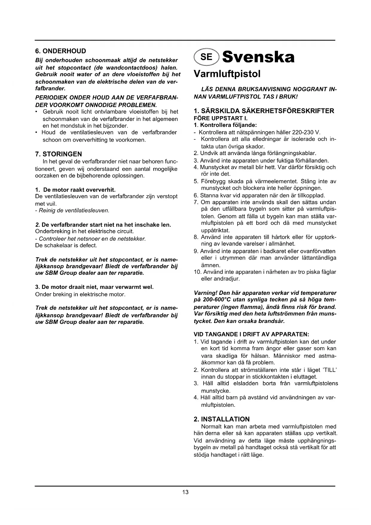Varning! Den här apparaten verkar vid temperaturer på 200-600°C utan synliga tecken på så höga temperaturer (ingen flamma), ändå finns risk för brand. Var försiktig med den heta luftströmmen från munstycket. Den kan orsaka brandsår.
