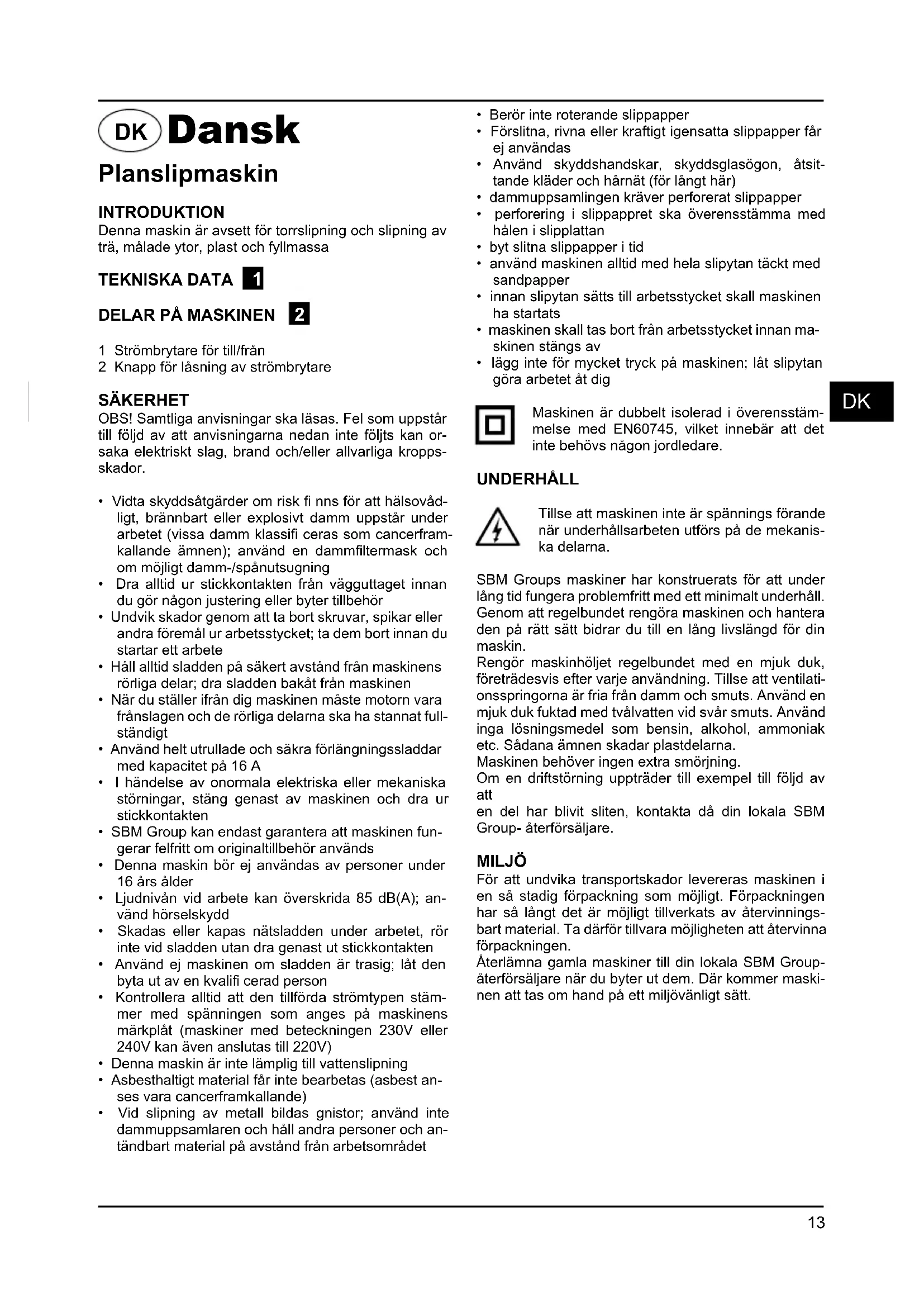 Denna maskin ar avsett for torrslipning och slipning av tra, malade ytor, plast och fyllmassa
