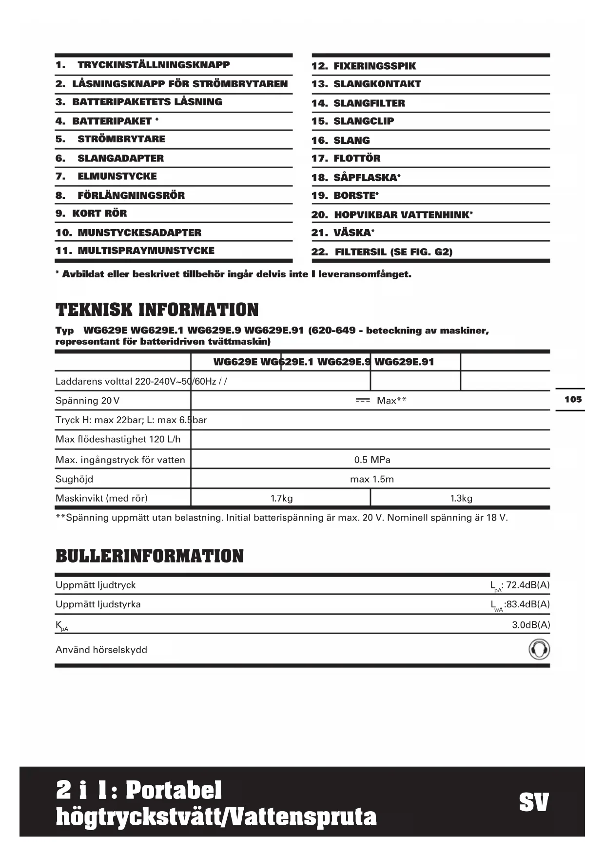 | Batteripaket (WA3551) 1 1 | / | / | ||