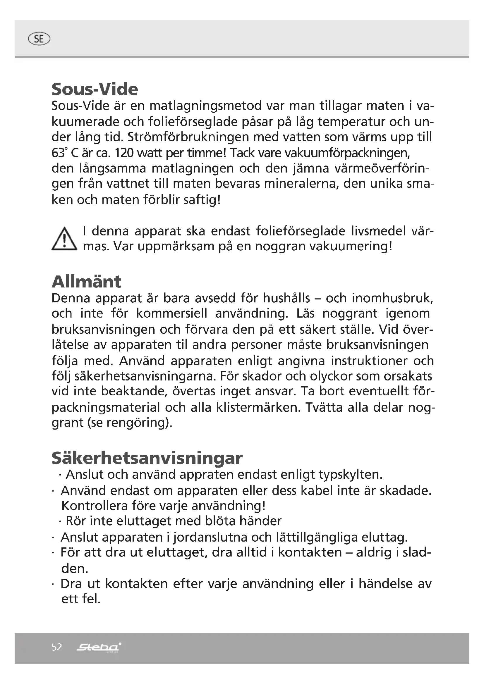 SV 80 - Andra köksapparater STEBA - Gratis bruksanvisning och manual