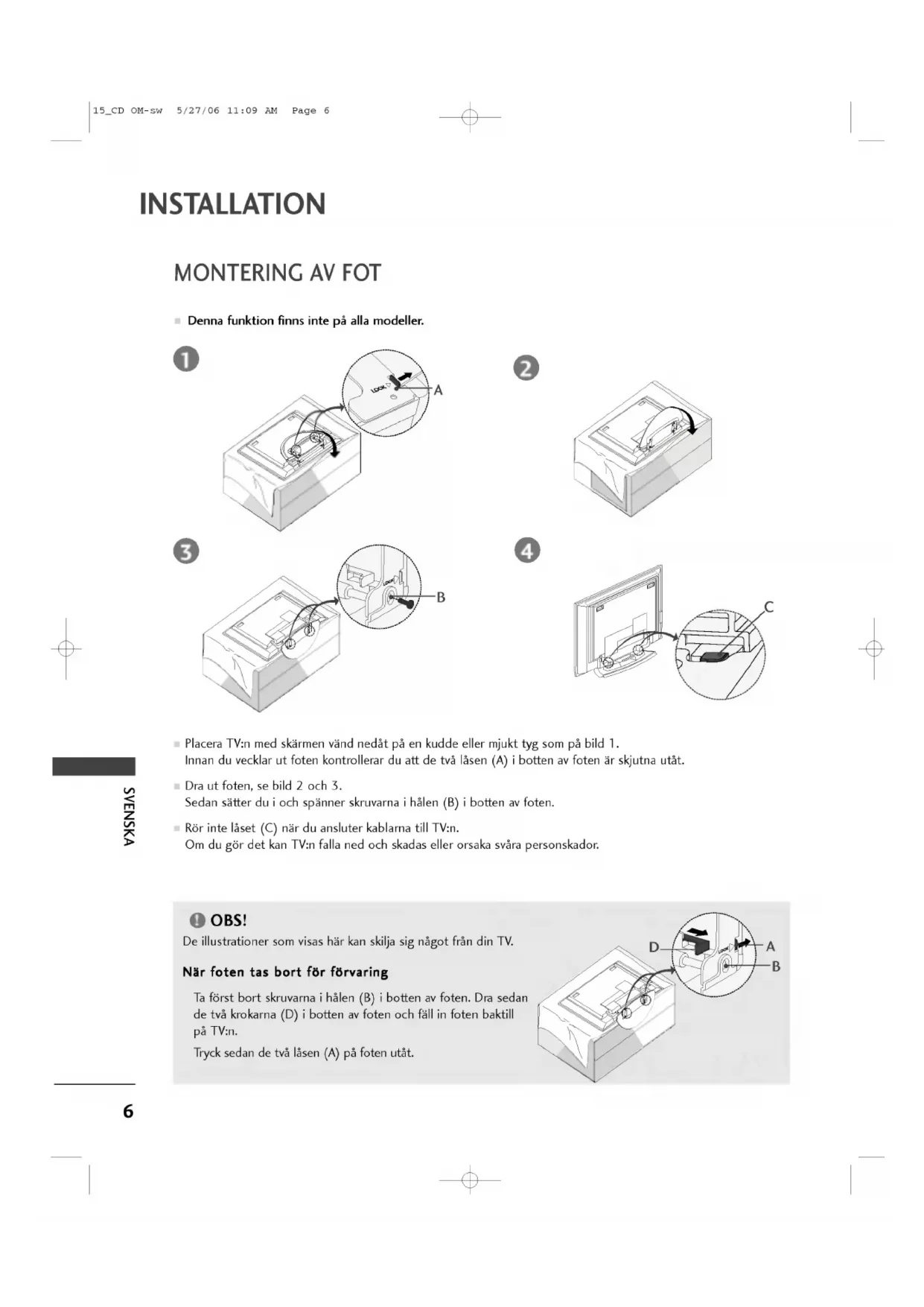 gor det kan TV:n falla ned och skadas eller orsaka svara personskador. ADB 15_CD OM-sw 5/27/06 11:09