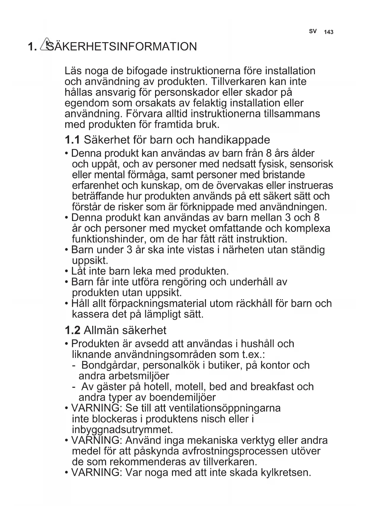 1.1 Säkerhet för barn och handikappade