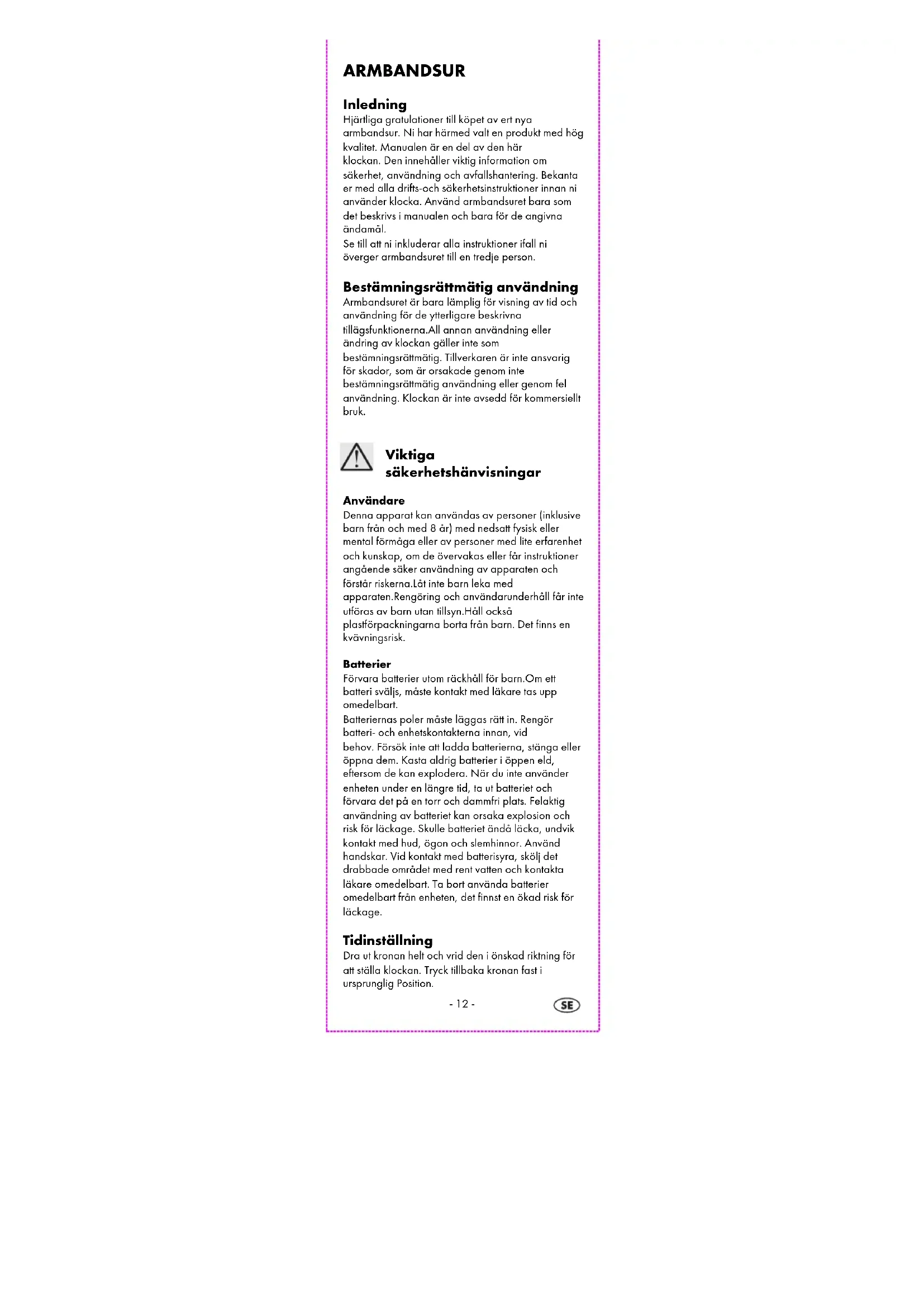 ARMBANDSUR Användar- och säkerhetsinstruktione