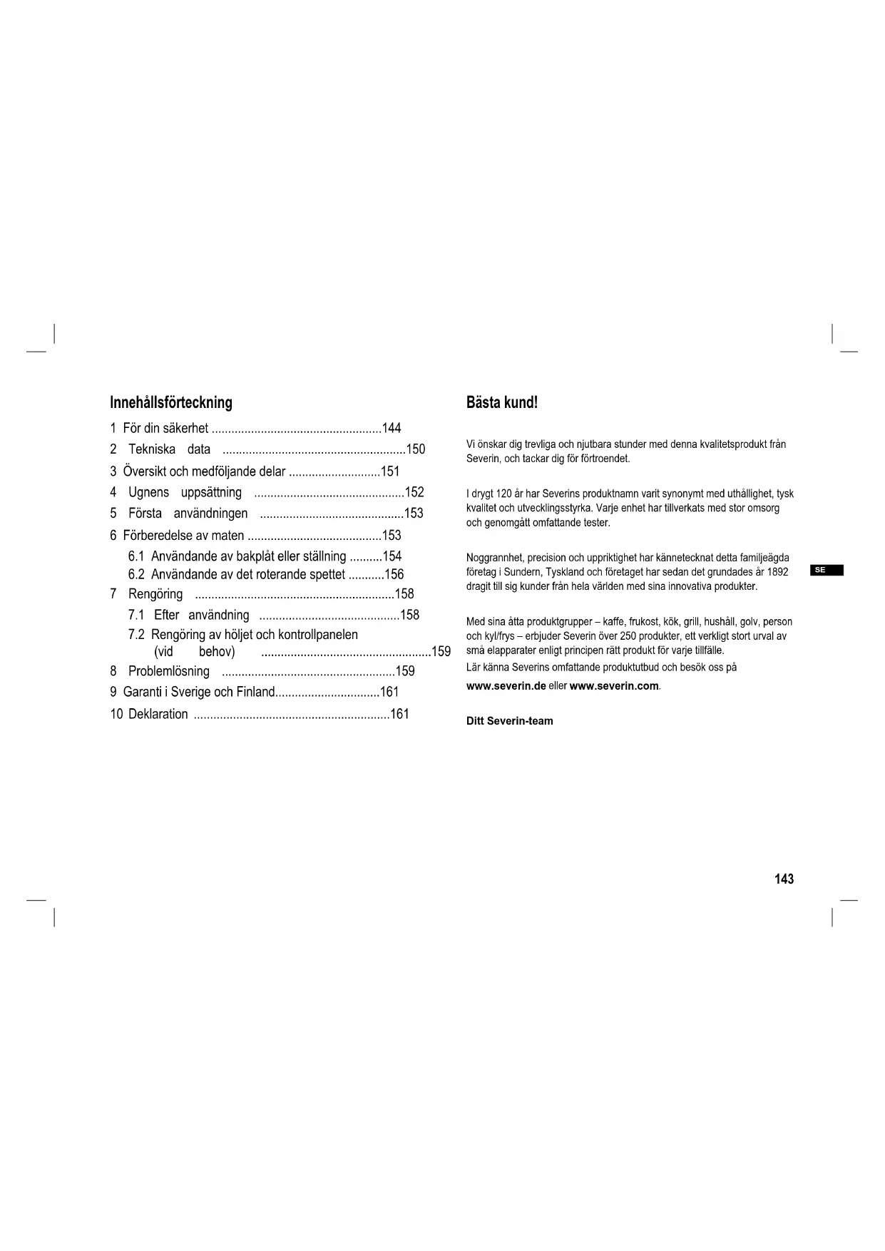 - Ditt Severin-team Innehållsförteckning 1 För din säkerhet p. 144