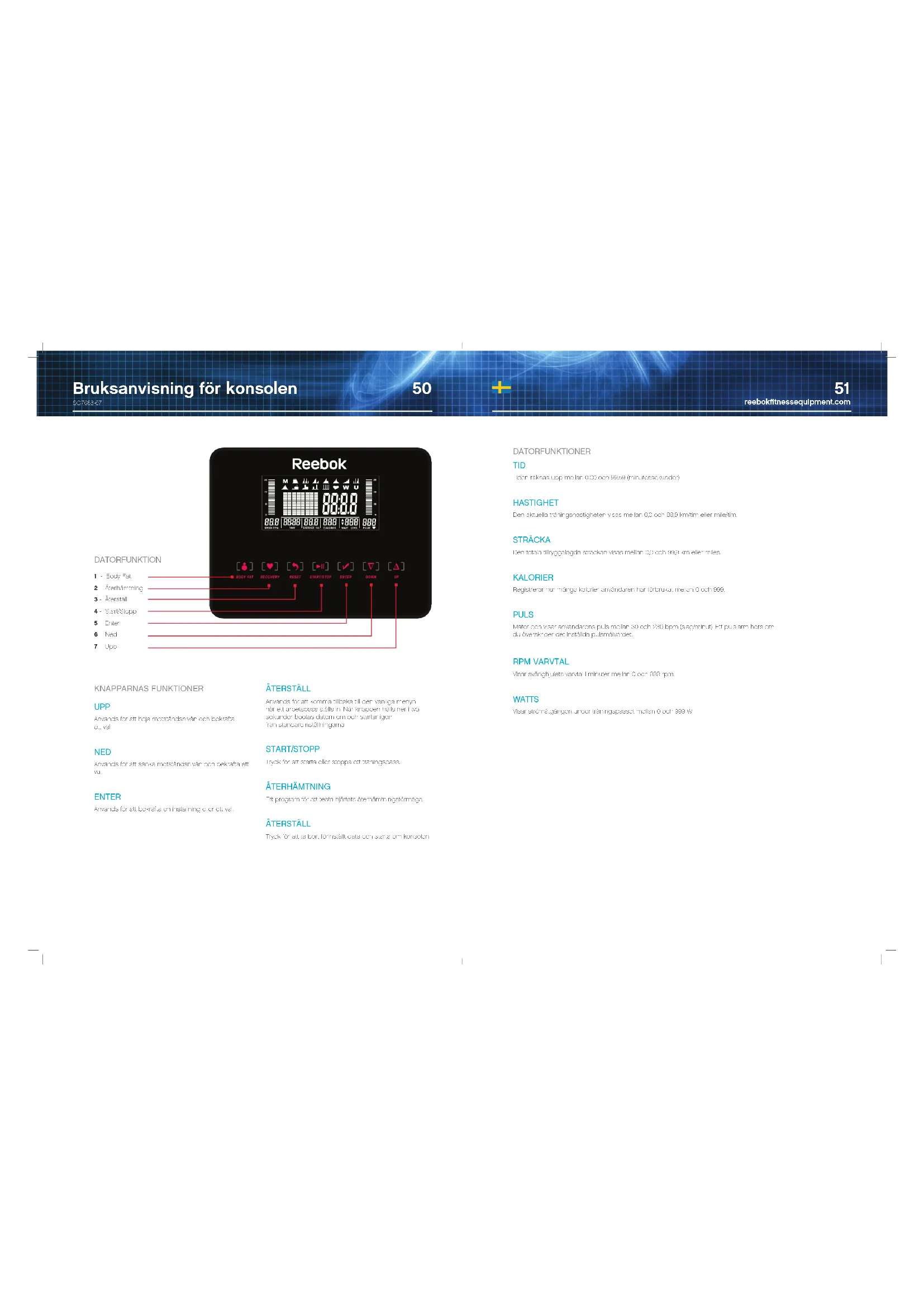 Norw5150 reebokfitnessequipment.com Bruksanvisning för konsolen SG7688-67 DATORFUNKTION