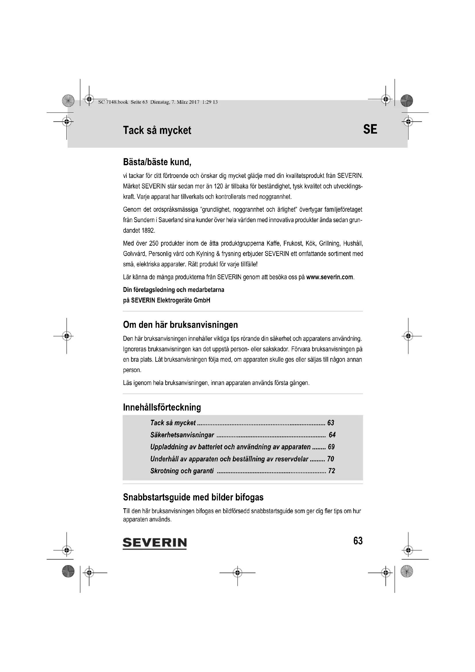 Hitta enhetens manual gratis SC 7148 SEVERIN i PDF-format.