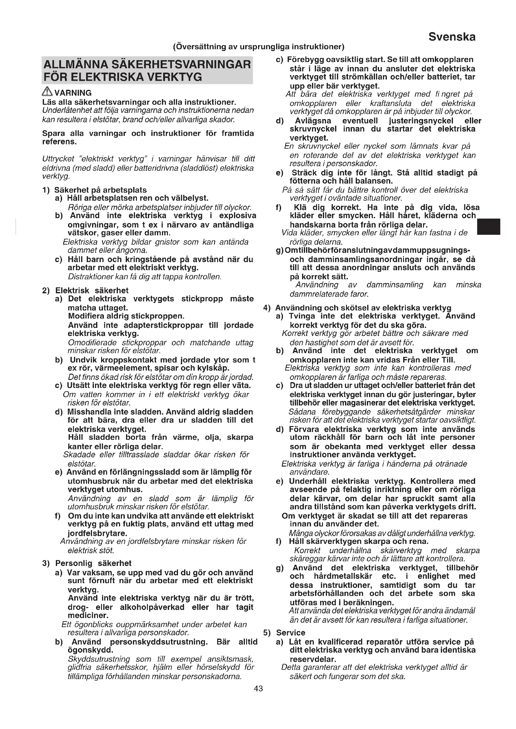 4) Användning och skötsel av elektriska verktyg