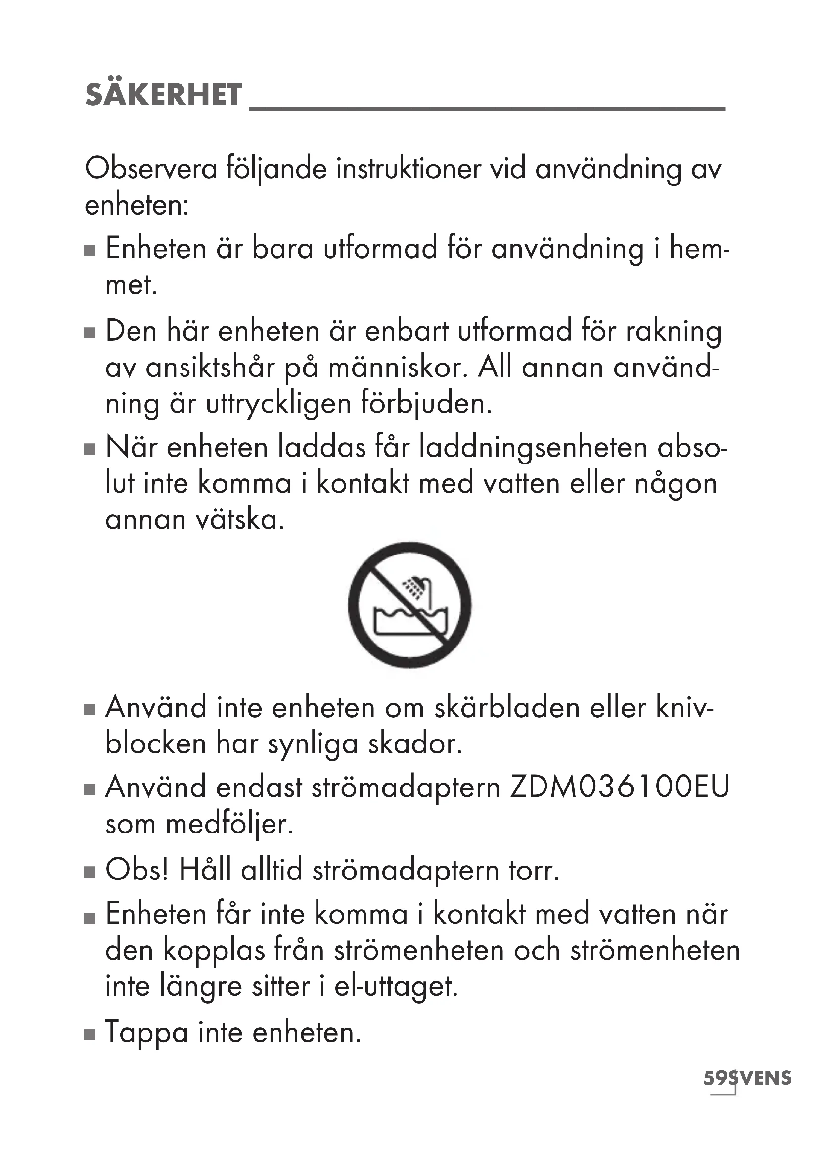 Den här enheten är enbart utformad för rakning av ansiktshår på människor. All annan använd- ning är uttryckligen förbjuden.