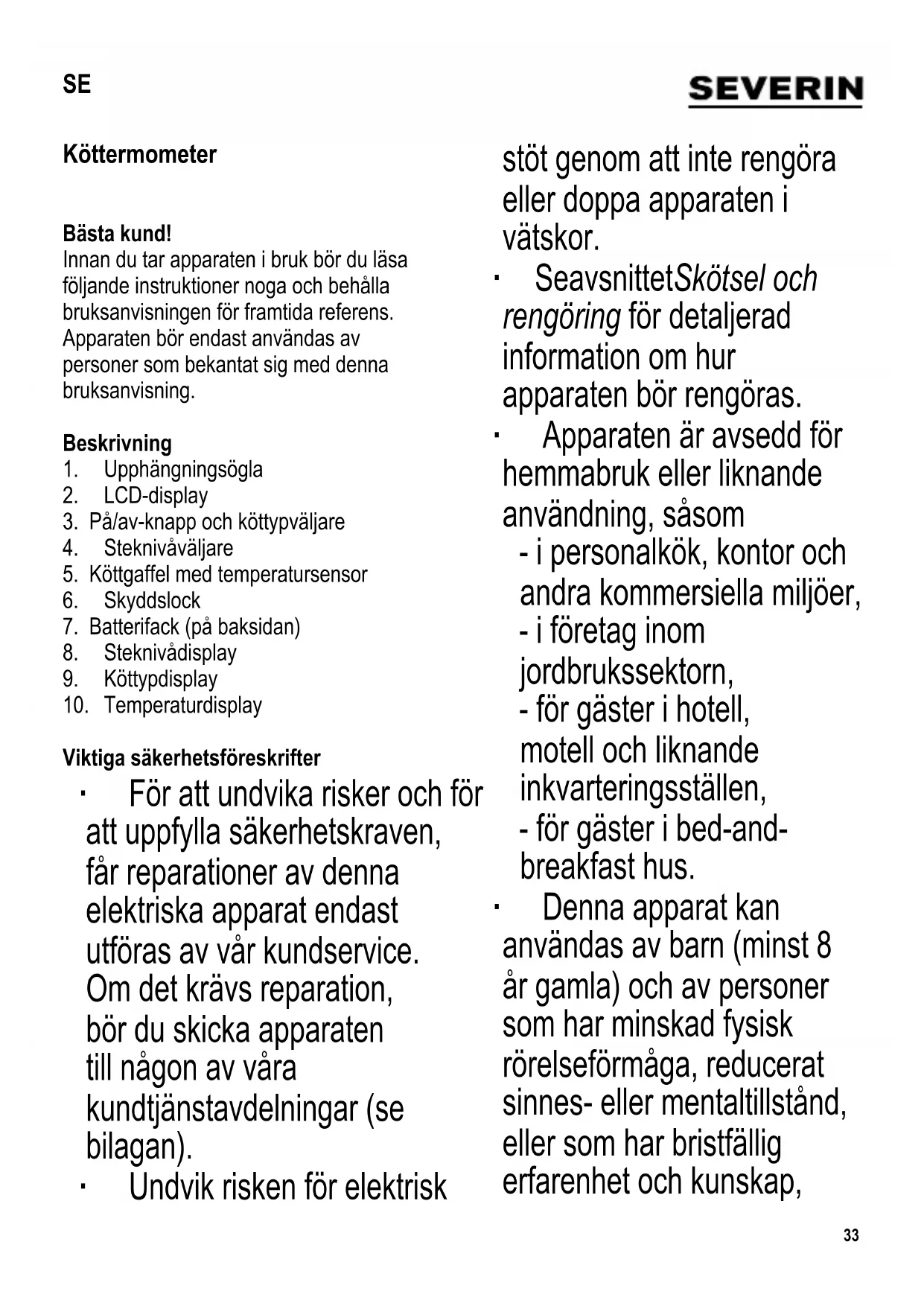 FT 9629 - Matttermometer SEVERIN - Gratis bruksanvisning och manual