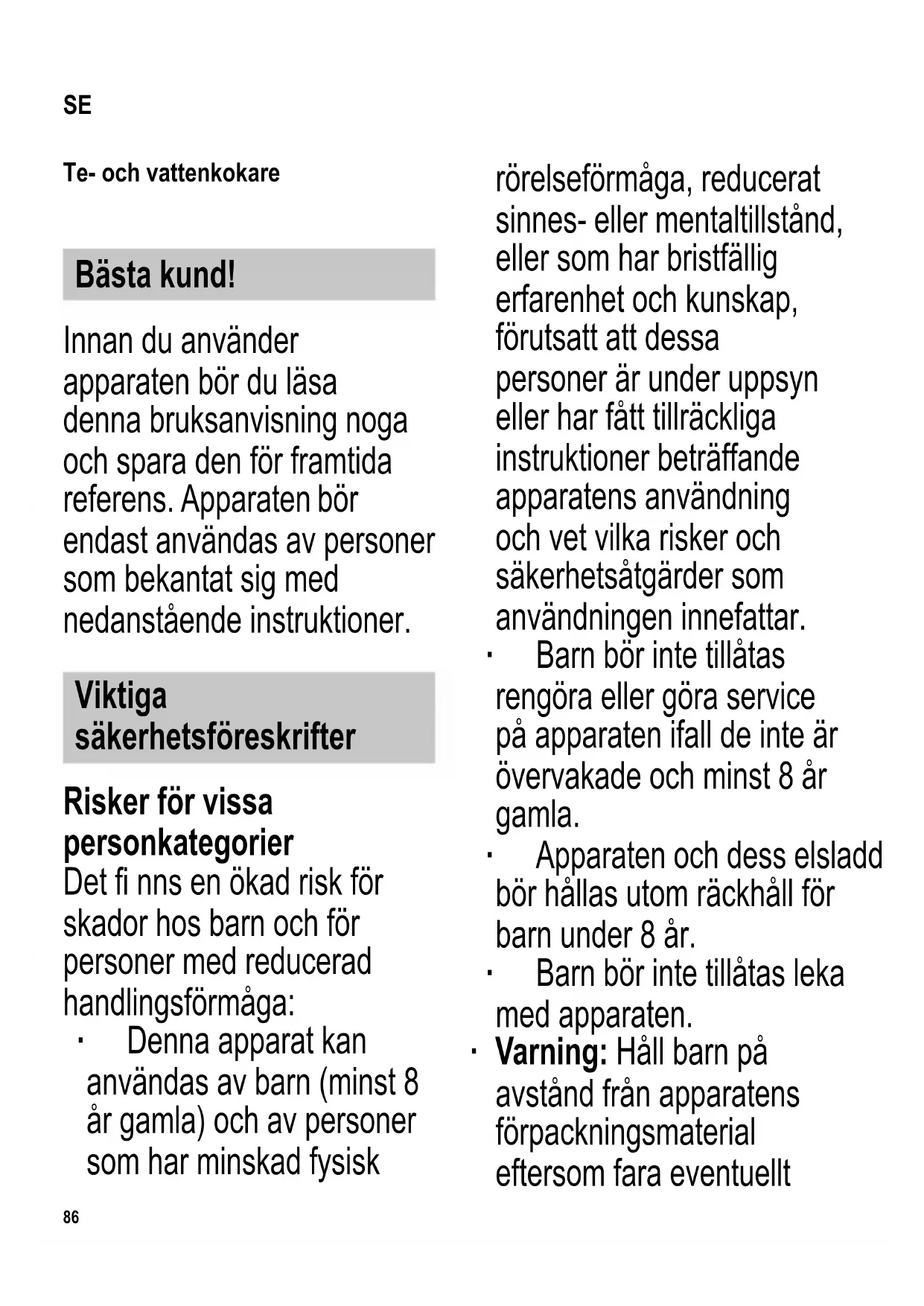 Det fi nns en ökad risk för skador hos barn och för personer med reducerad handlingsförmåga: