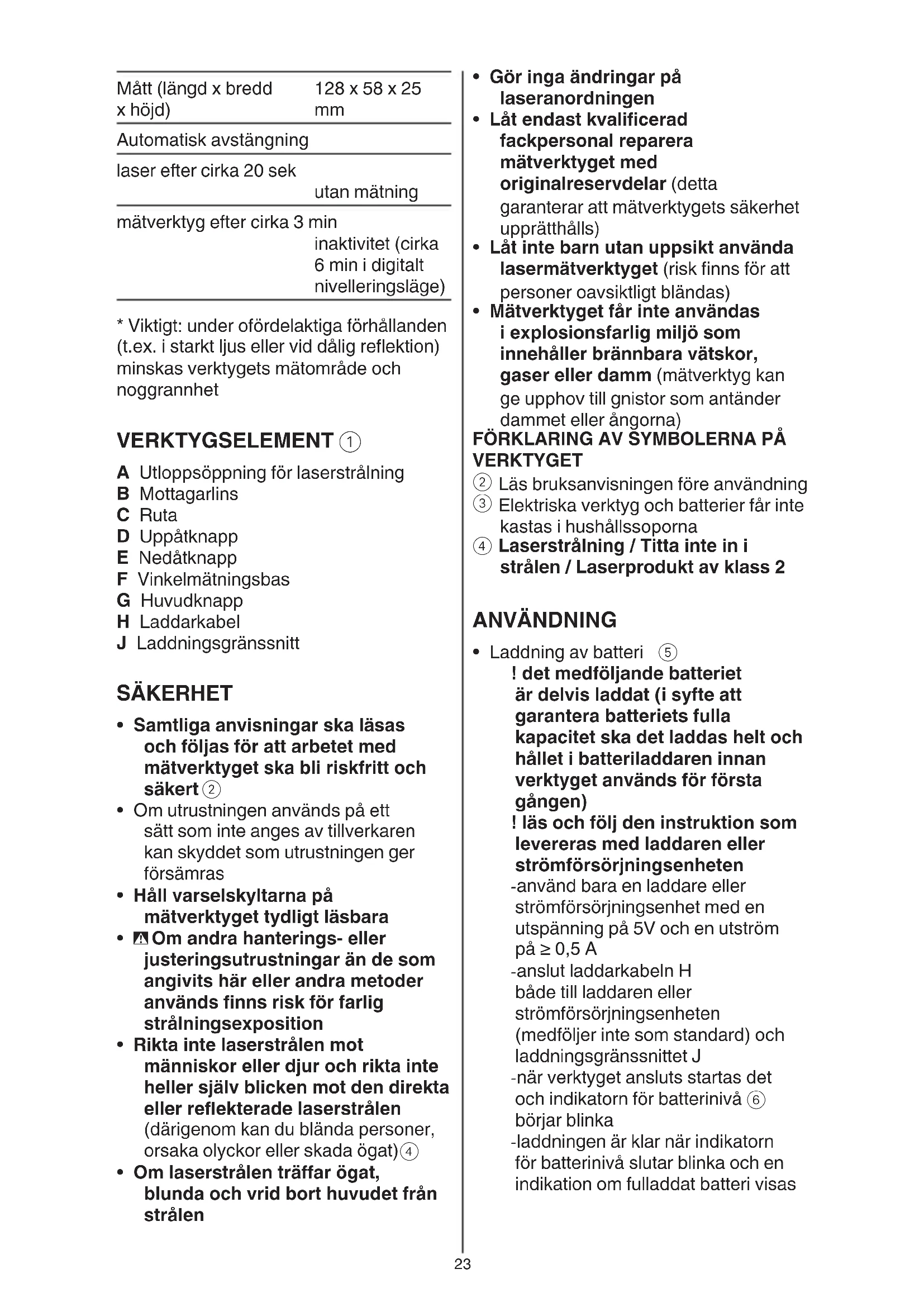 | Funktioner | Avst e5ndsm e4tning, ber e4kning av yta och volym |
