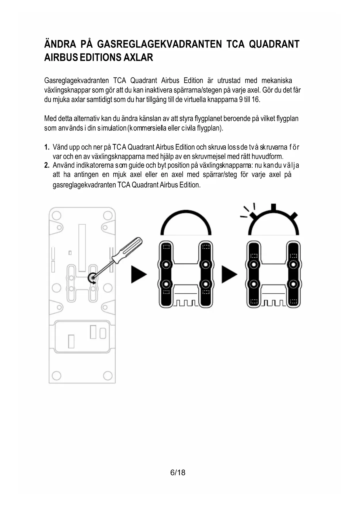 att ha antingen en mjuk axel eller en axel med spärrar/steg för varje axel på gasreglagekvadranten TCA Quadrant Airbus Edition.7/18