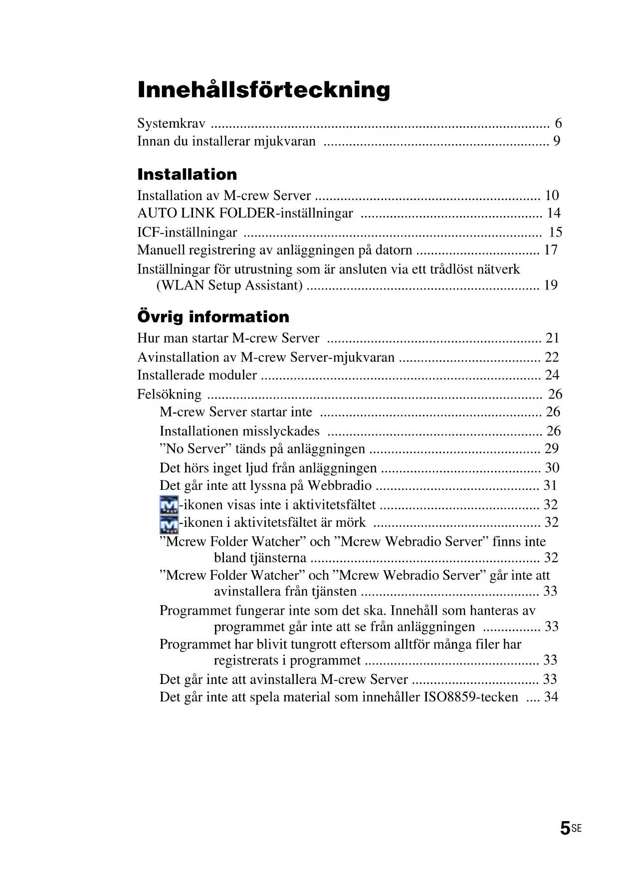 Om det skulle uppsta nagot problem när du installerar erler avinstaller M-crew Server, sök att avhjalpa problemet med hjälp av nedanstäende felsökningsschema. Om du inte lyckas bl av med problemet after att ha kontrollerat alla nedanstäende punkter sö kontaktaARNMaste Sony-handlare.