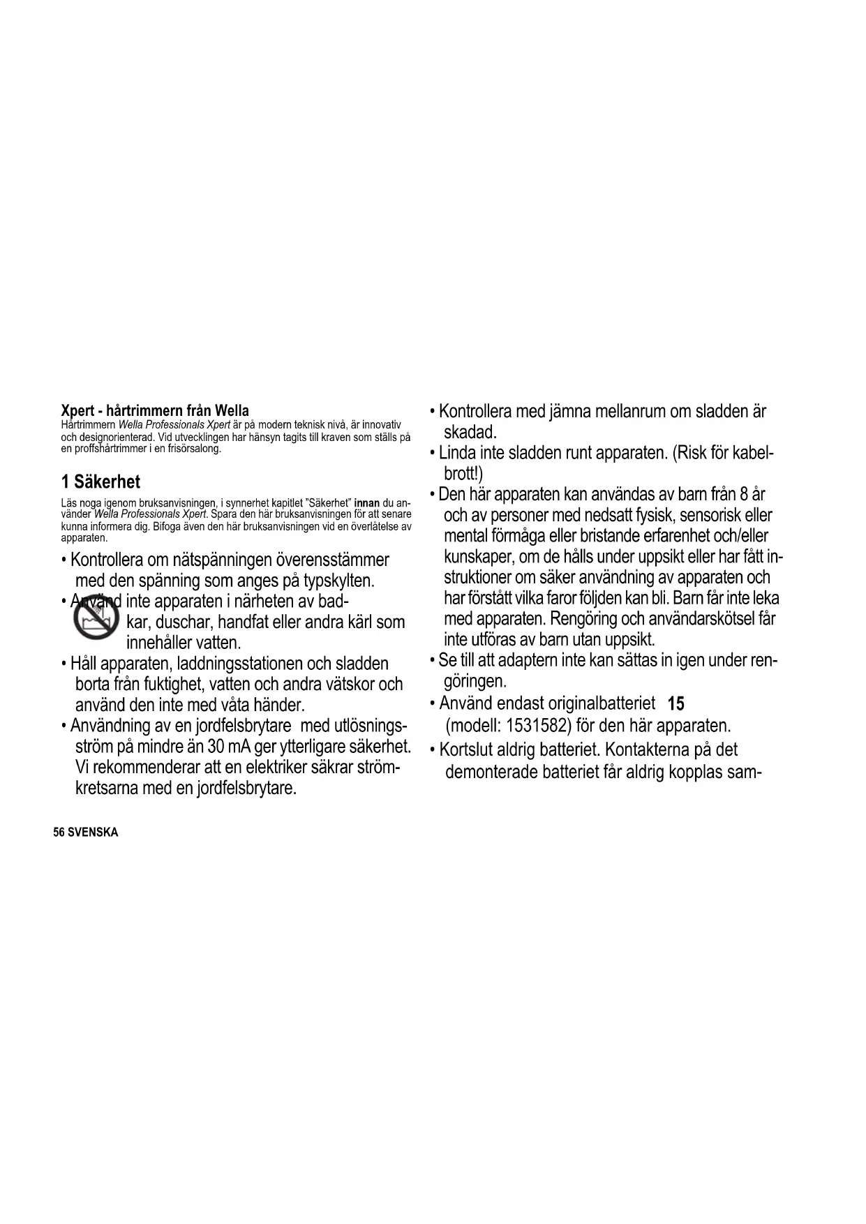 - Använd endast original Wella-batteriet 15, som du kan beställa hos Wella- kundtjänsten.