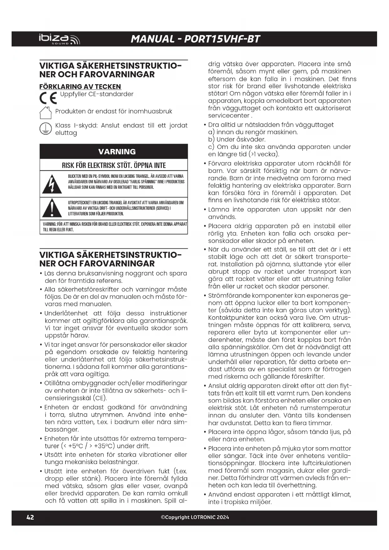 BRUKSANVISNING PORT15VHFBT IBIZA SOUND
