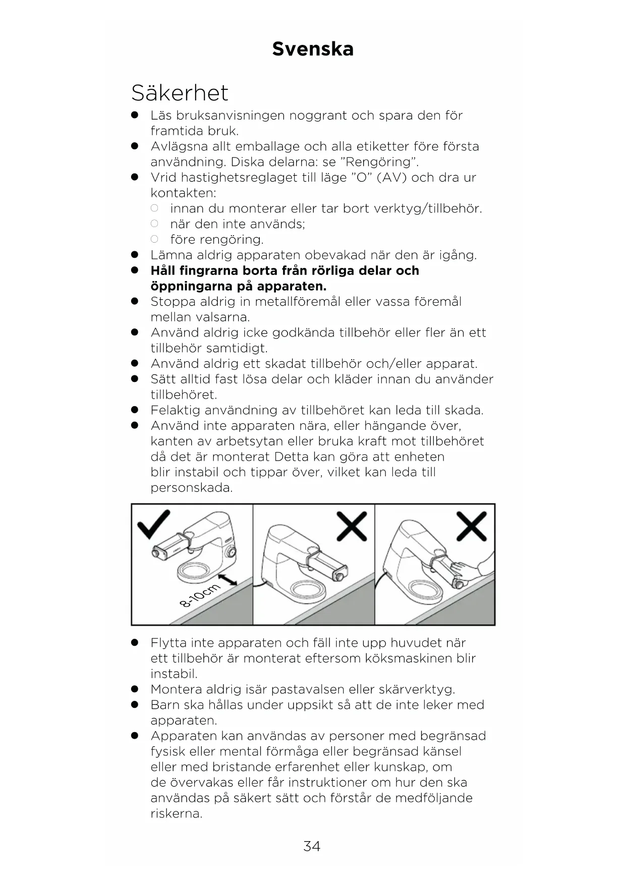 Se bruksanvisningen för köksmaskinen för ytterligare säkerhetsinformation. Rengöring