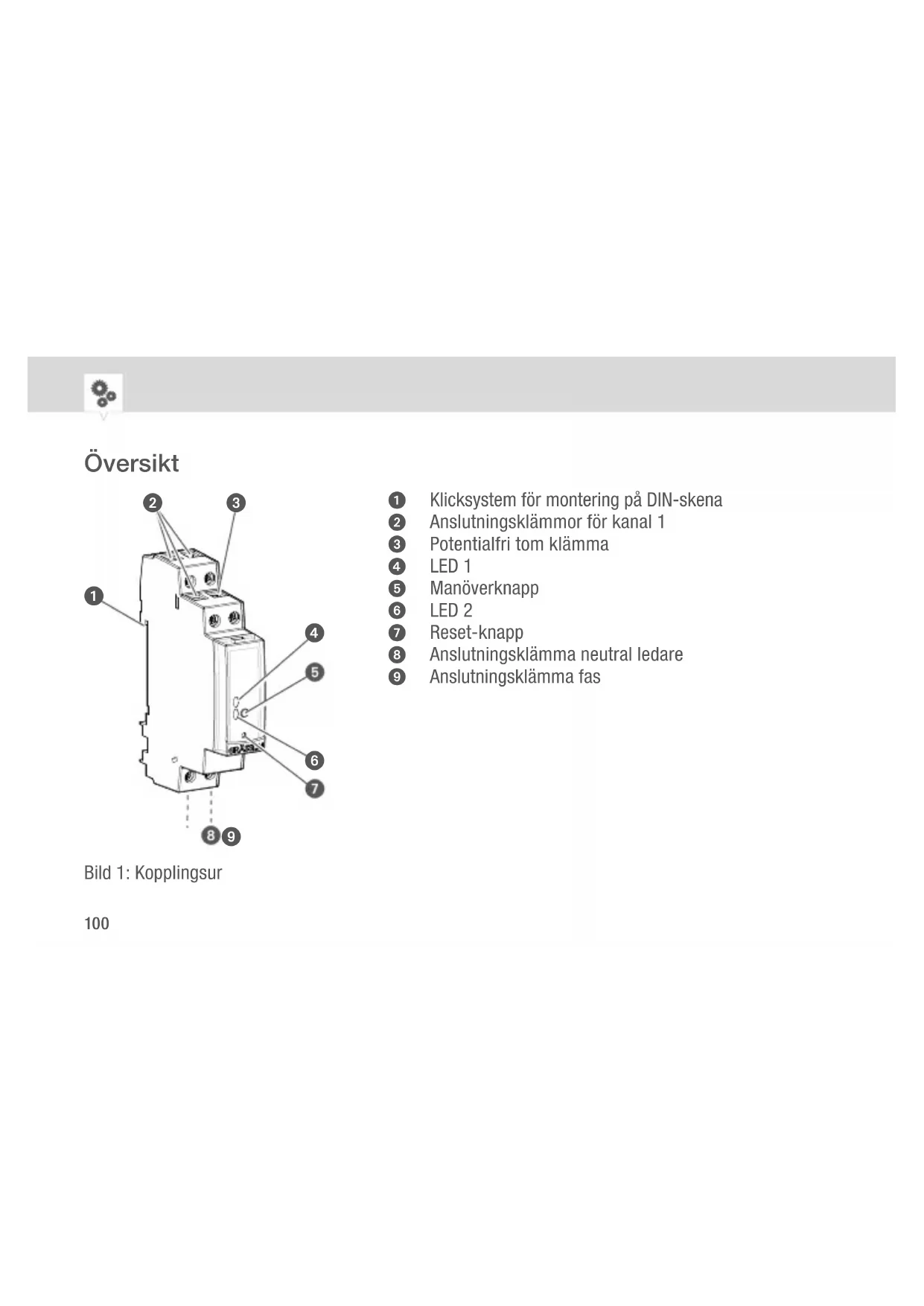 Likvidace Nesprávná likvidace Nebezpečí pro životní prostředí při nesprávné likvidaci! Při nesprávné likvidaci může dojít k ohrožení životního prostředí. − Elektroodpad a elektronické součásti likvidujte odborně, tzn. díly určené klikvidaci roztřiďte podle skupin materiálů. − Likvidaci zásadně provádějte šetrně kživotnímu prostředí podle stavu ekolo- gické a recyklační techniky, stejně jako zařízení pro likvidaci odpadů. OCHRANA ŽIVOTNÍHO PROSTŘEDÍ!98 Denna bruksanvisning möjliggör en säker och effektiv hantering av kopplingsuret (hädanefter ”appa- rat”). Denna bruksanvisning är en del av apparaten och måste förvaras så att den alltid är tillgänglig för alla som använder apparaten. Alla som hanterar apparaten måste läsa igenom och ha förstått denna bruksanvisning före alla arbeten. En grundförutsättning för ett säkert arbete är att alla angivna säkerhetsanvisningar och åtgärdsanvisningar i denna bruksanvisning följs. Upphovsrätt Denna bruksanvisning är skyddad av upphovsrätten. Det är förbjudet att överlåta denna bruksanvisning till tredje person, kopiera den på något sätt – även delvis – samt utnyttja och/eller vidarebefordra innehållet utan skriftlig tillåtelse från tillverkaren om det inte är för interna syften. Överträdelser leder till skadestånd. Tillverkaren förbehåller sig rätten till ytterligare anspråk. Tillverkaren äger upphovsrätten. Nedladdning Följande information nns under www.graesslin.de: Bruksanvisning för nedladdning och Tekniska data.99
