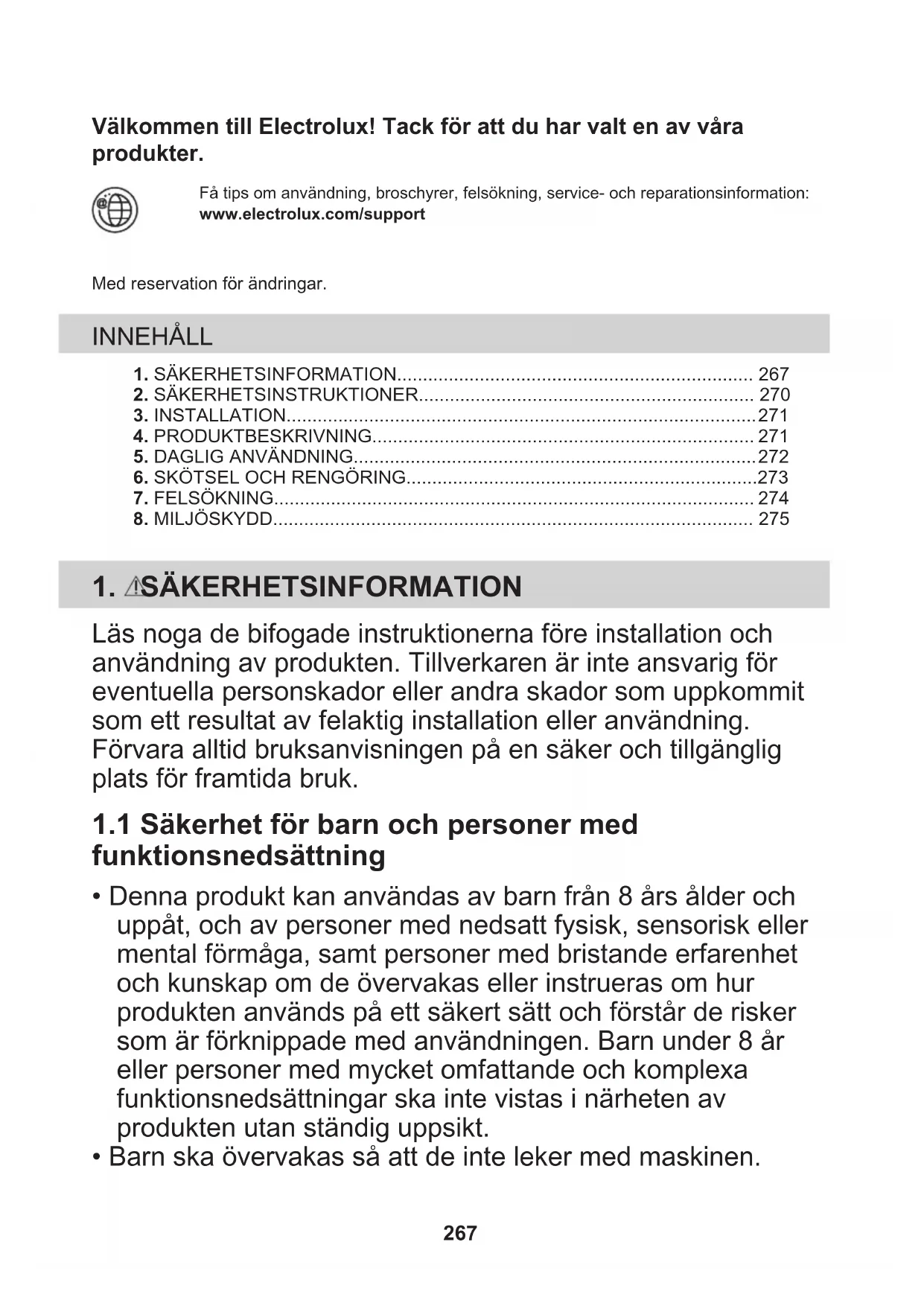 1.1 Säkerhet för barn och personer med