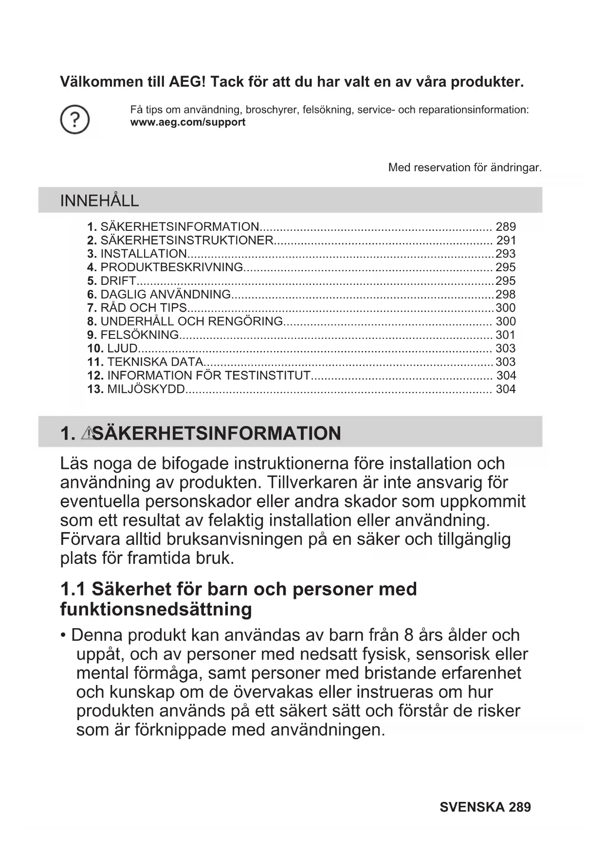 1.1 Säkerhet för barn och personer med