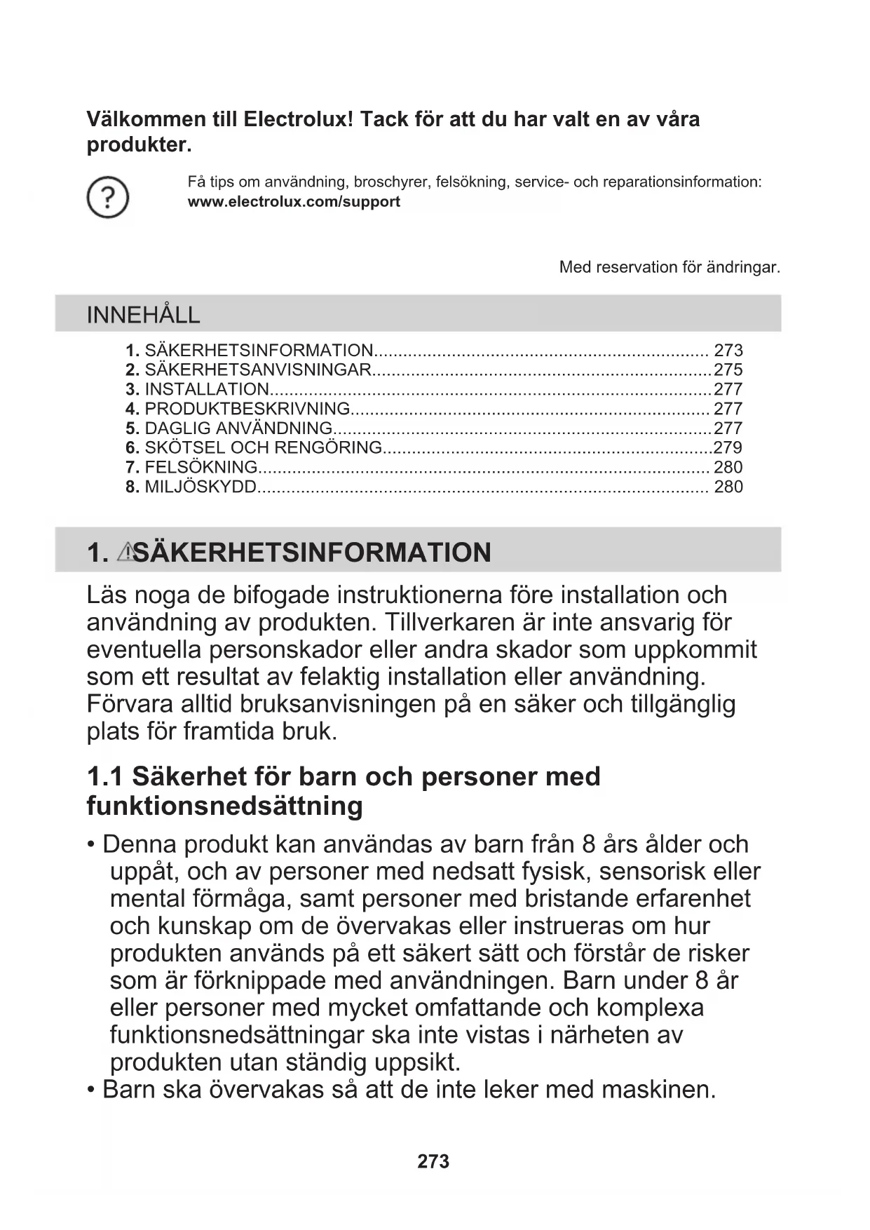 1.1 Säkerhet för barn och personer med