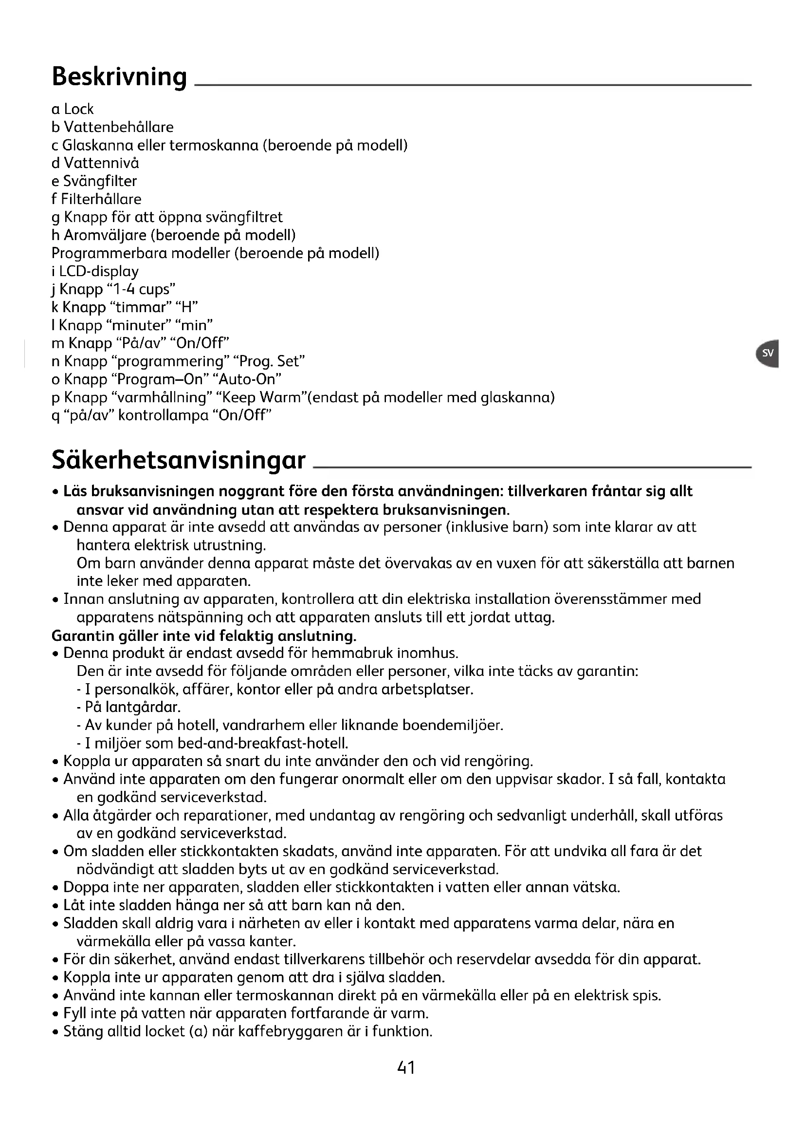 - Filterhållaren kan diskas i diskmaskin.