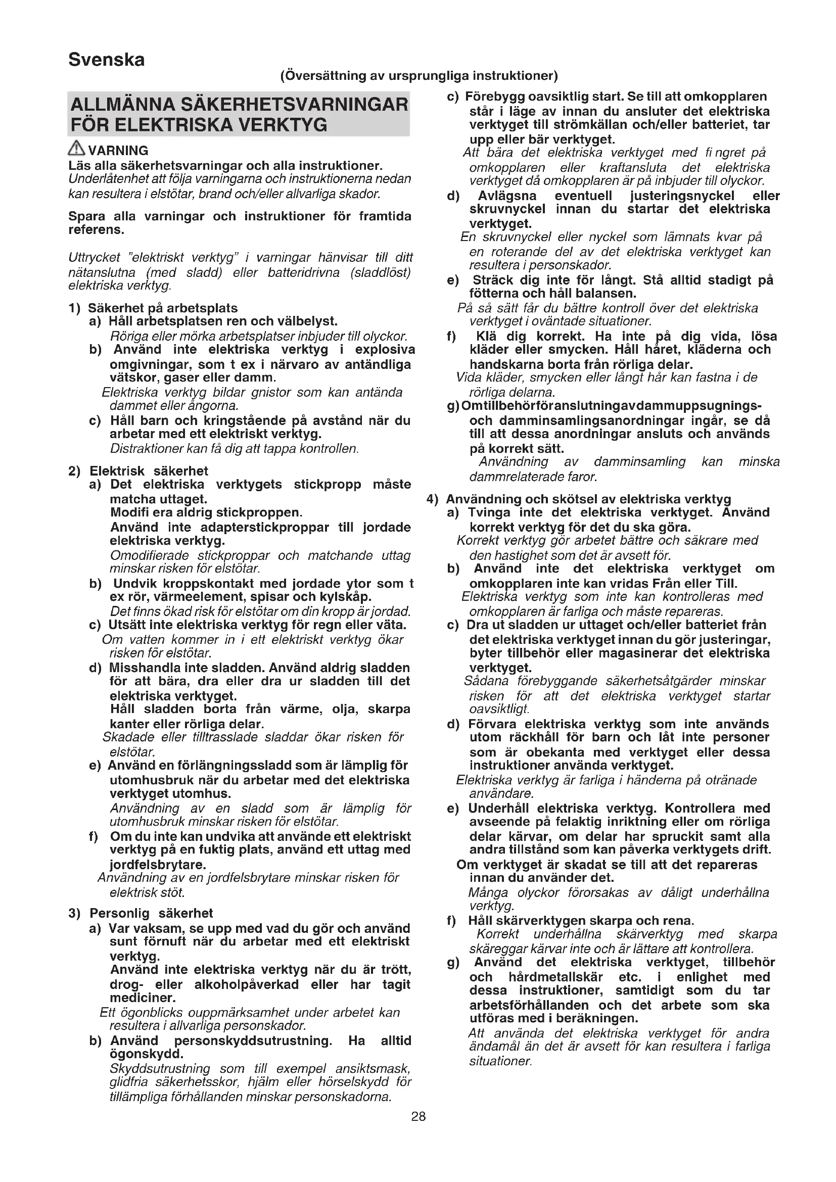 4) Användning och skötsel av elektriska verktyg