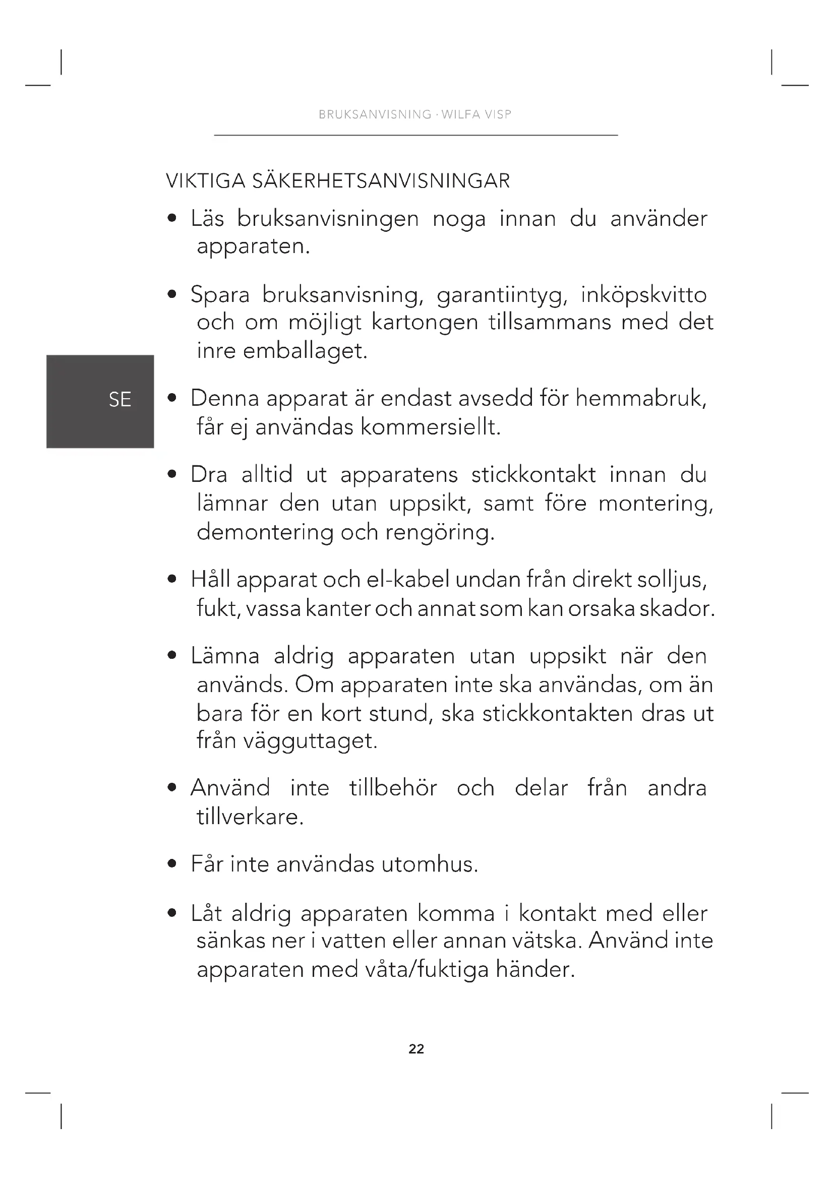 - Denna apparat är endast avsedd för hemmabruk, får ej användas kommersiellt.