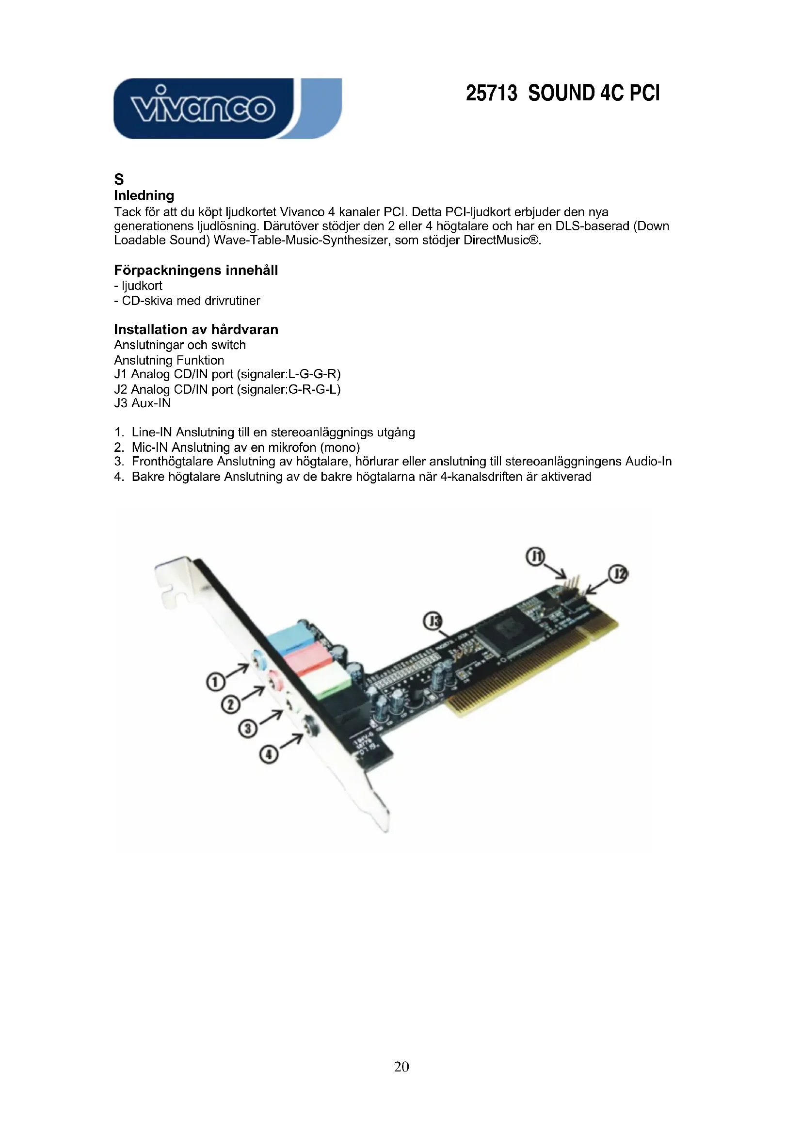 BRUKSANVISNING SOUND 4C PCI VIVANCO