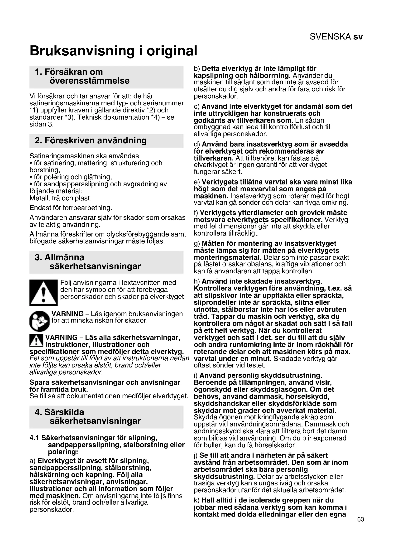 4.1 Säkerhetsanvisningar för slipning,
