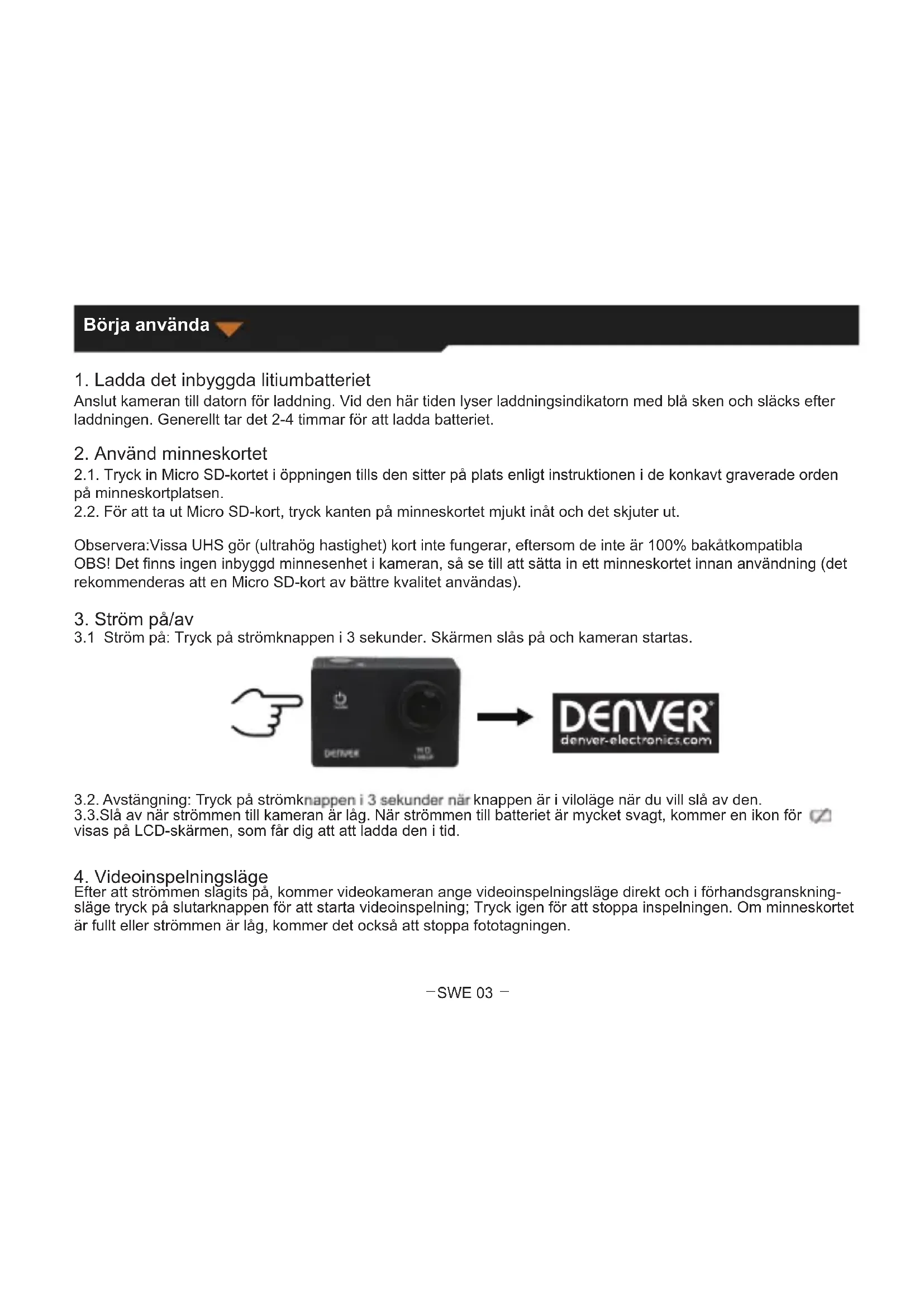 ACT320 - Videokamera DENVER - Gratis bruksanvisning och manual
