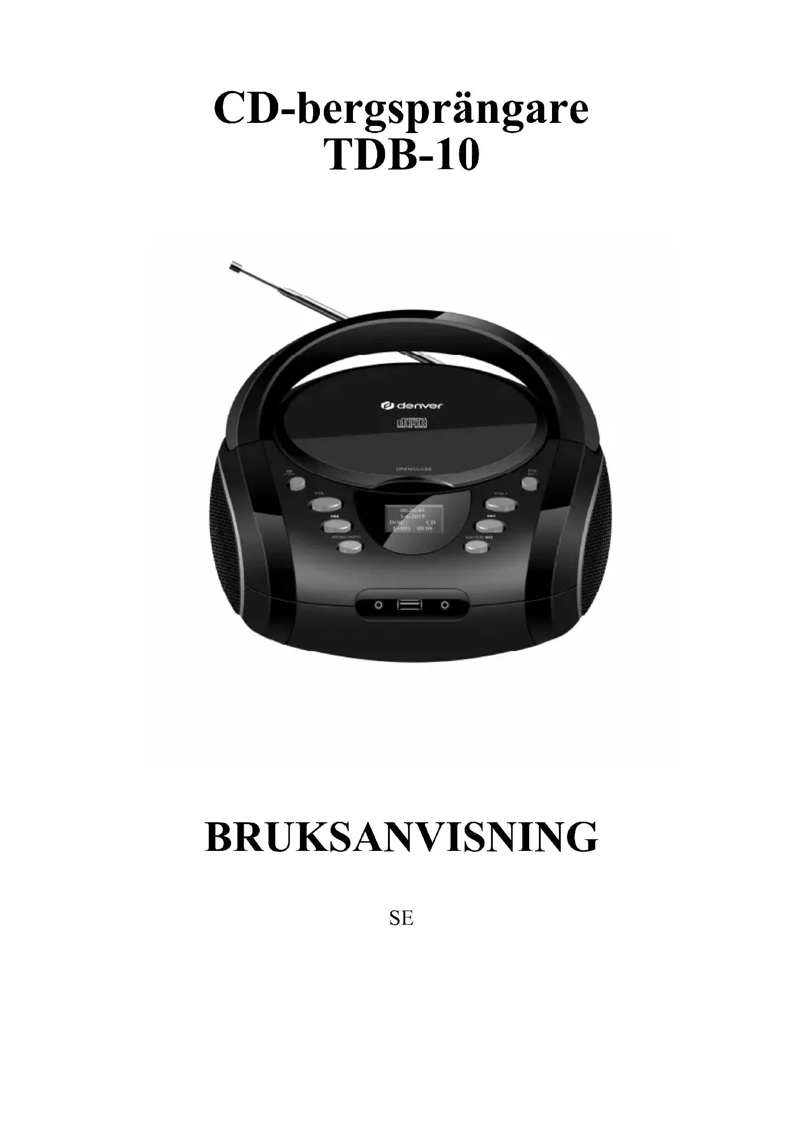 Ladda ner instruktionerna för din Cd-spelare/inspelare i PDF-format gratis! Hitta din manual TDB10 - DENVER och ta tillbaka ditt elektroniska enhet i hand. På denna sida publiceras alla dokument som behövs för att använda din enhet. TDB10 av märket DENVER.