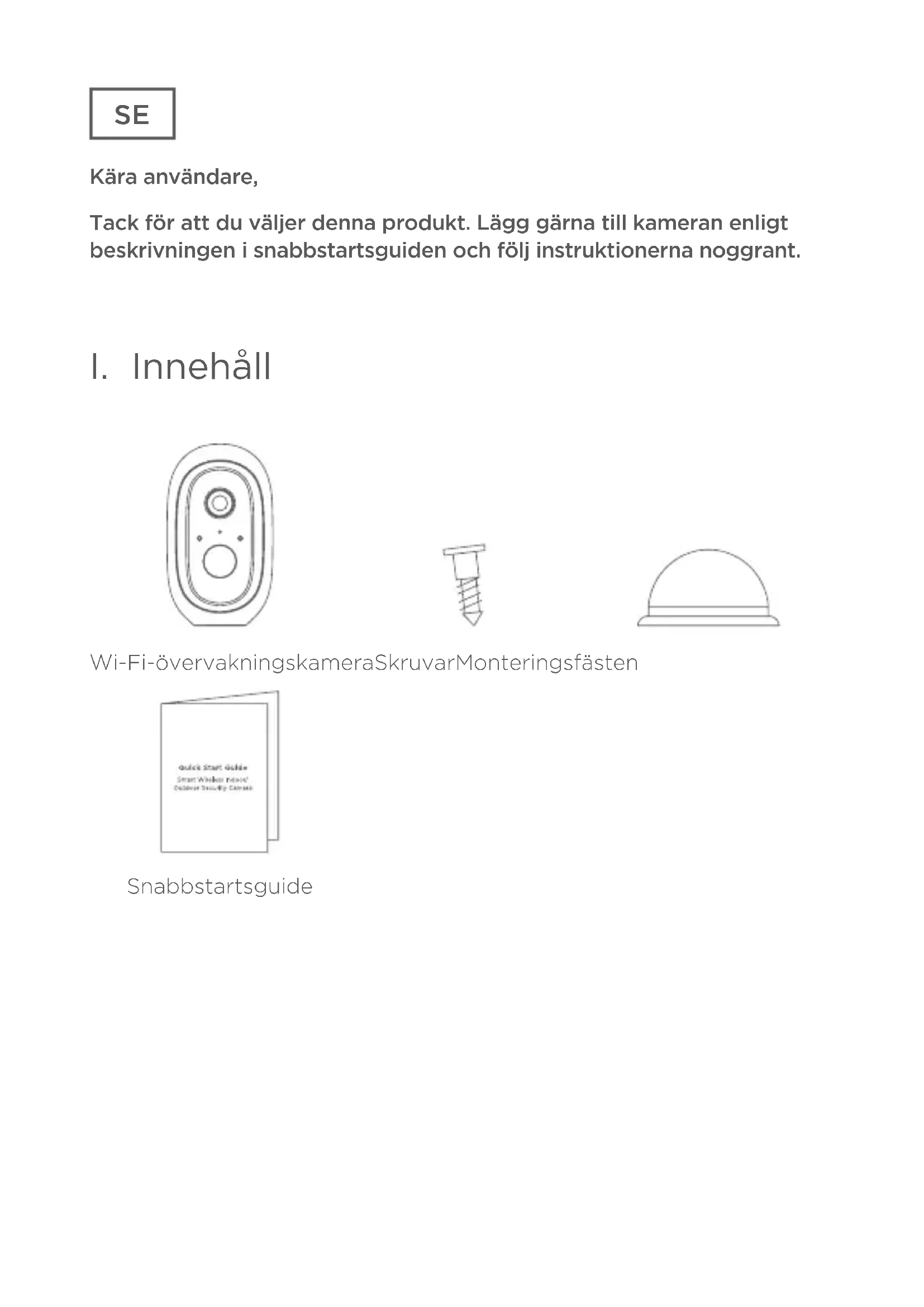 Wi-Fi-övervakningskamera Skruvar Monteringsfästen SnabbstartsguideSE
