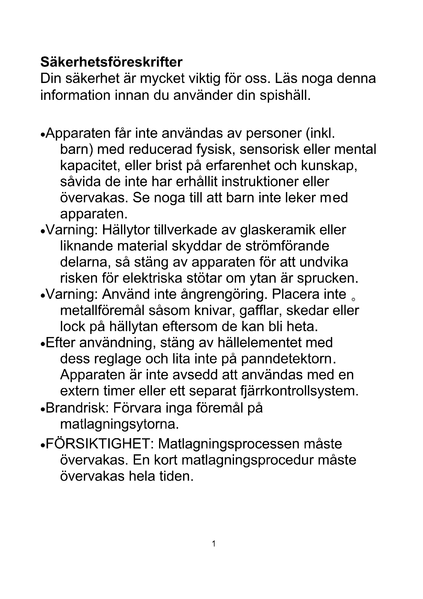 - FÖRSIKTIGHET: Matlagningsprocessen måste3 övervakas. En kort matlagningsprocedur måste övervakas hela tiden.