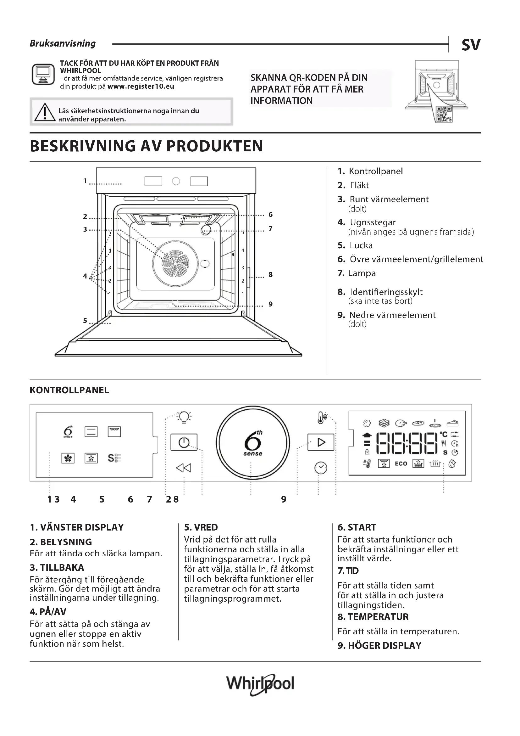 WOI4S8HM2SWA - Ugn WHIRLPOOL - Gratis bruksanvisning och manual