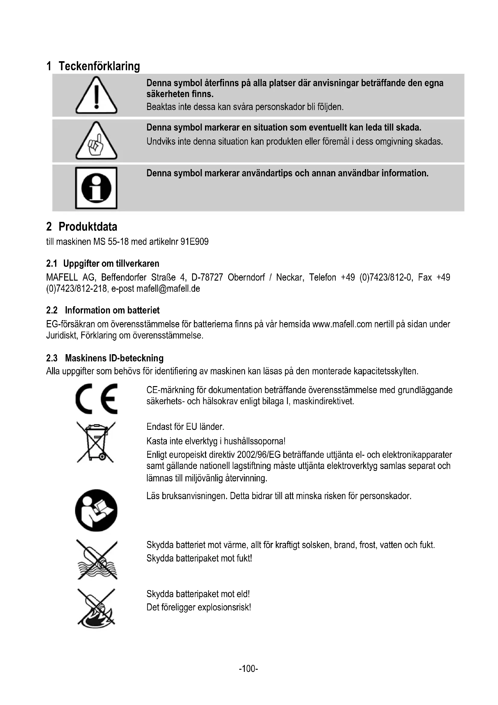 Denna symbol markerar användartips och annan användbar information. 2 Produktdata till maskinen MS 55-18 med artikelnr 91E909