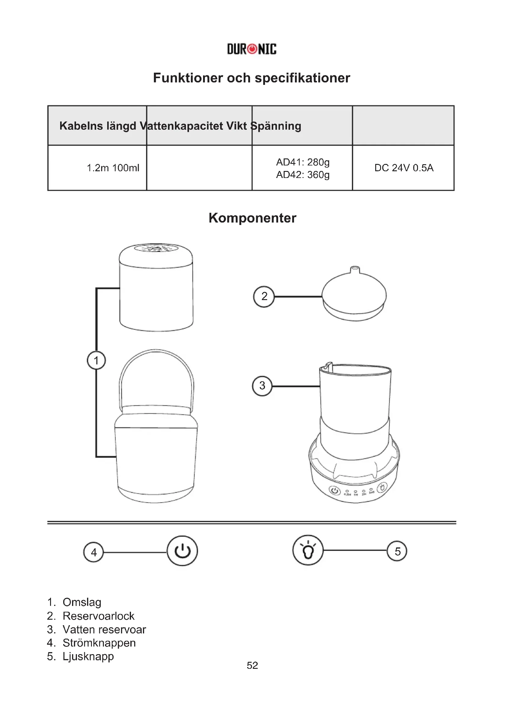 Hitta enhetens manual gratis AD41 Duronic i PDF-format.