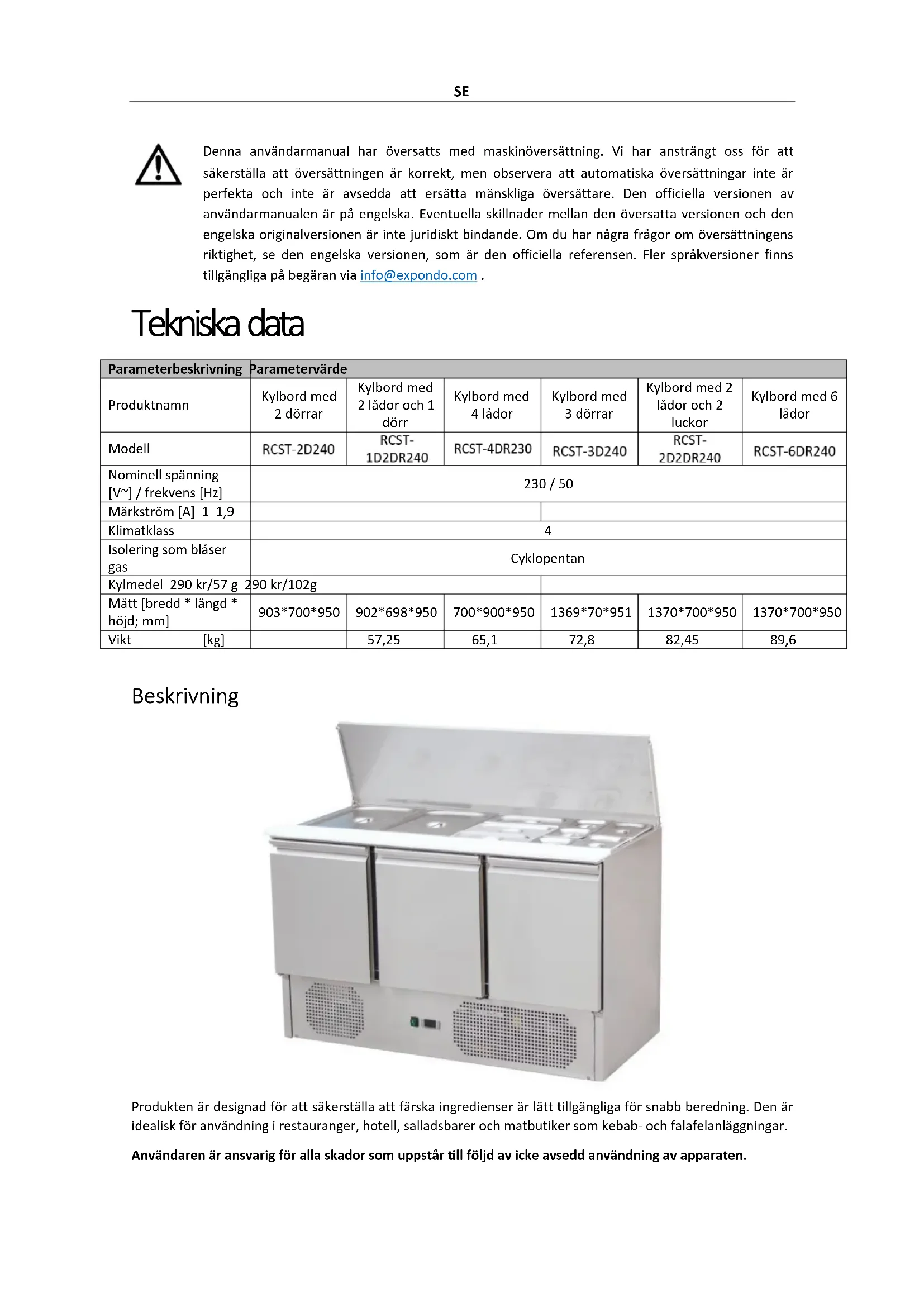 Denna användarmanual har översatts med maskinöversätting. Vi har ansträngt oss für att sakerställa att översättningen ar korrekt, men observerva att automatiska översättningar inte ar perfekta och inte ar avsedda att ersättma mänsklga översättare. Den officiella versionen av användarmanualen ar på engelska. Eventuella skillnader mellan den översatta versionen och den engelska originalversionen ar inte juridiskt bindande. Om du har nagra frägor om översättningens riktighet, se den engelska versionen, som ar den officiella referensen. Fler språkversioner finns tillganglia på begaran via info@expondo.com.