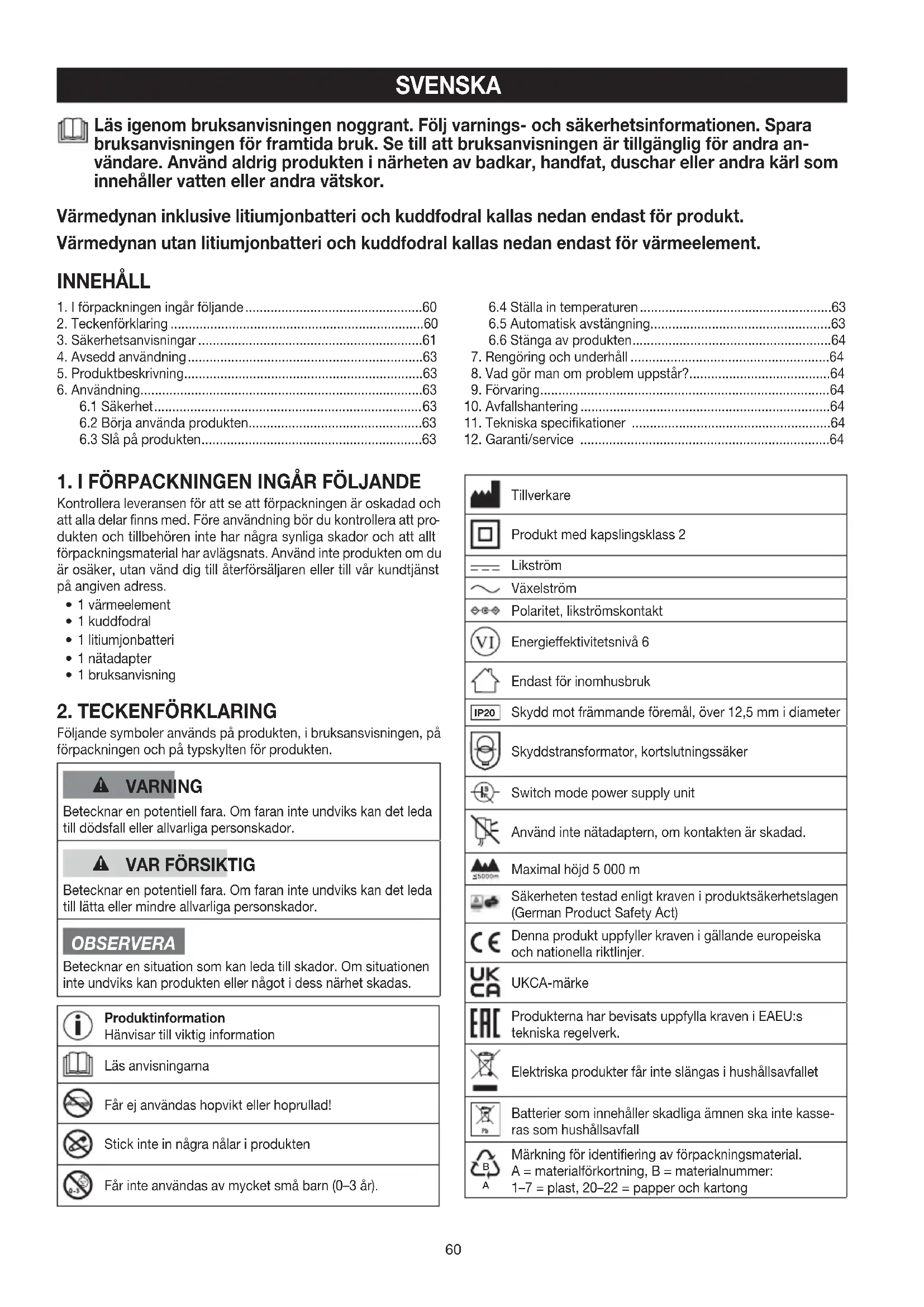 1. I förpackningen ingår följande .................................................60