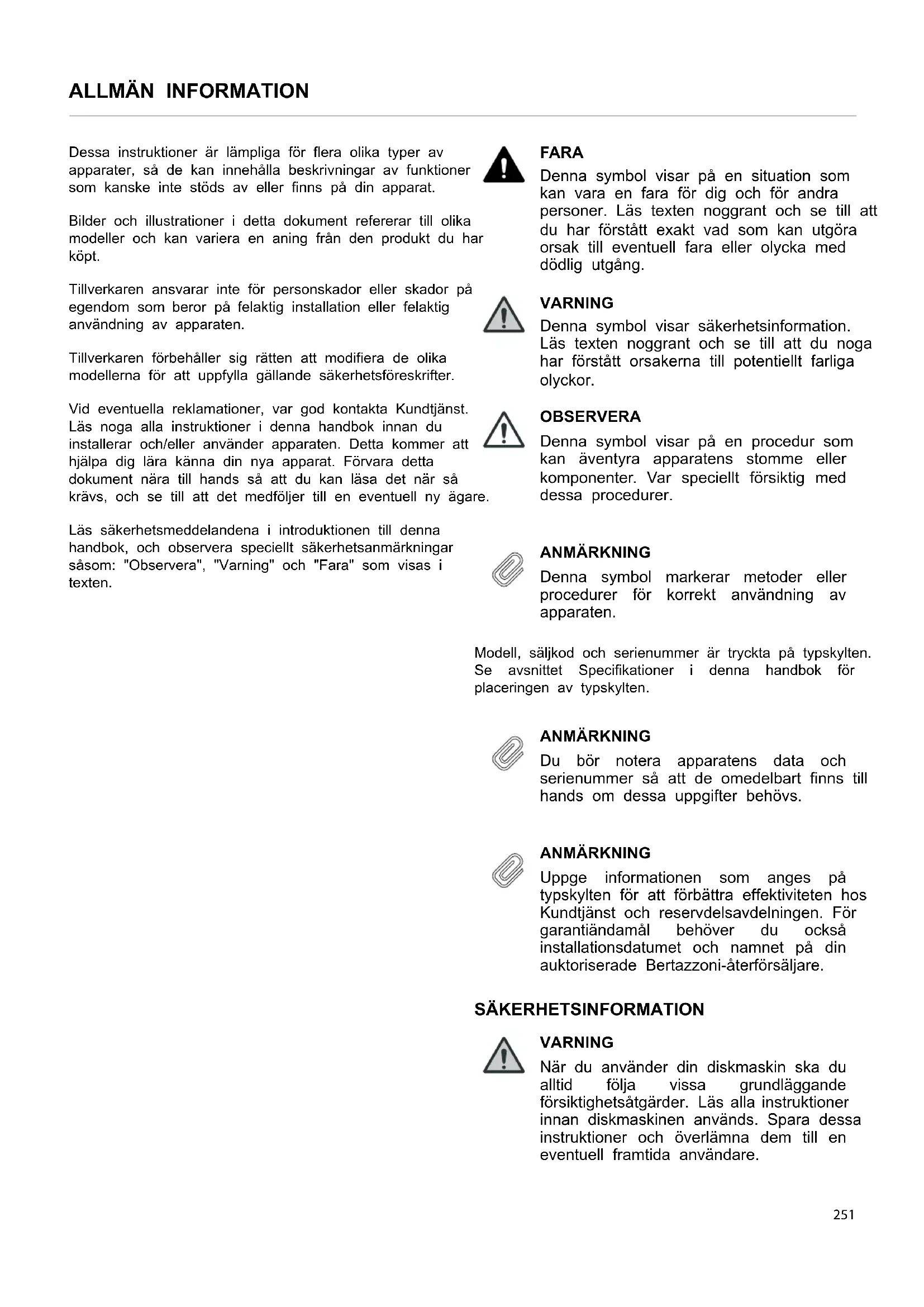Denna handbokkommen att hjälpa dig att lara dig att ta hand om din Bertazzoniprodukt pa allra basta och sakkraste vis, sa att du kan fä full tillfredsstellelse dà du använder den i鬆nga,鬆nga ár.