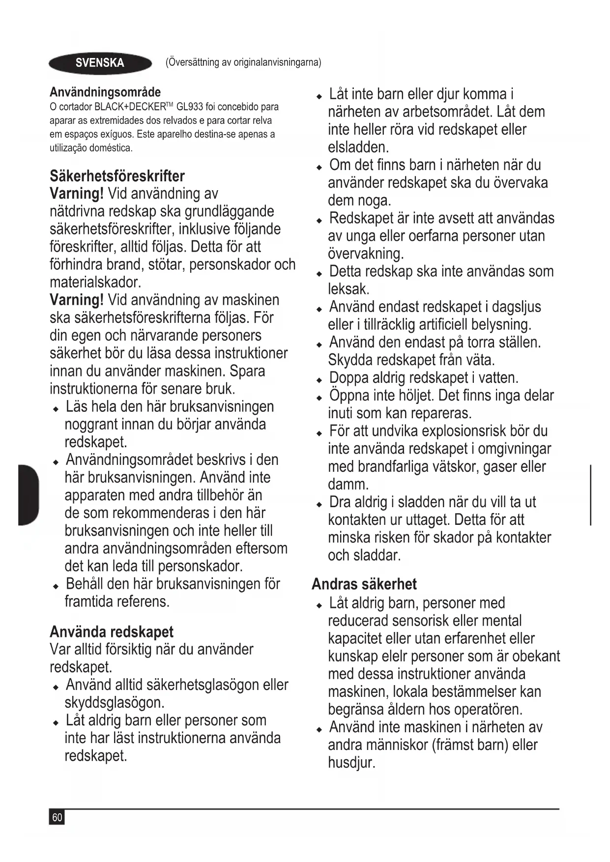 Hitta enhetens manual gratis GL933 BLACK & DECKER i PDF-format.