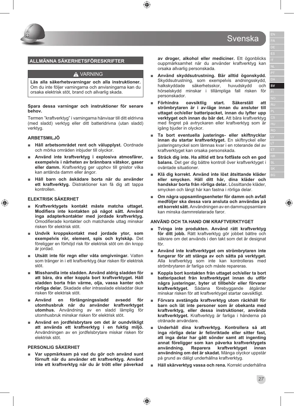 RUVDNDDOOYDUOLJSHUVRQVNDGD ALLMÄNNA SÄKERHETSFÖRESKRIFTER VARNING